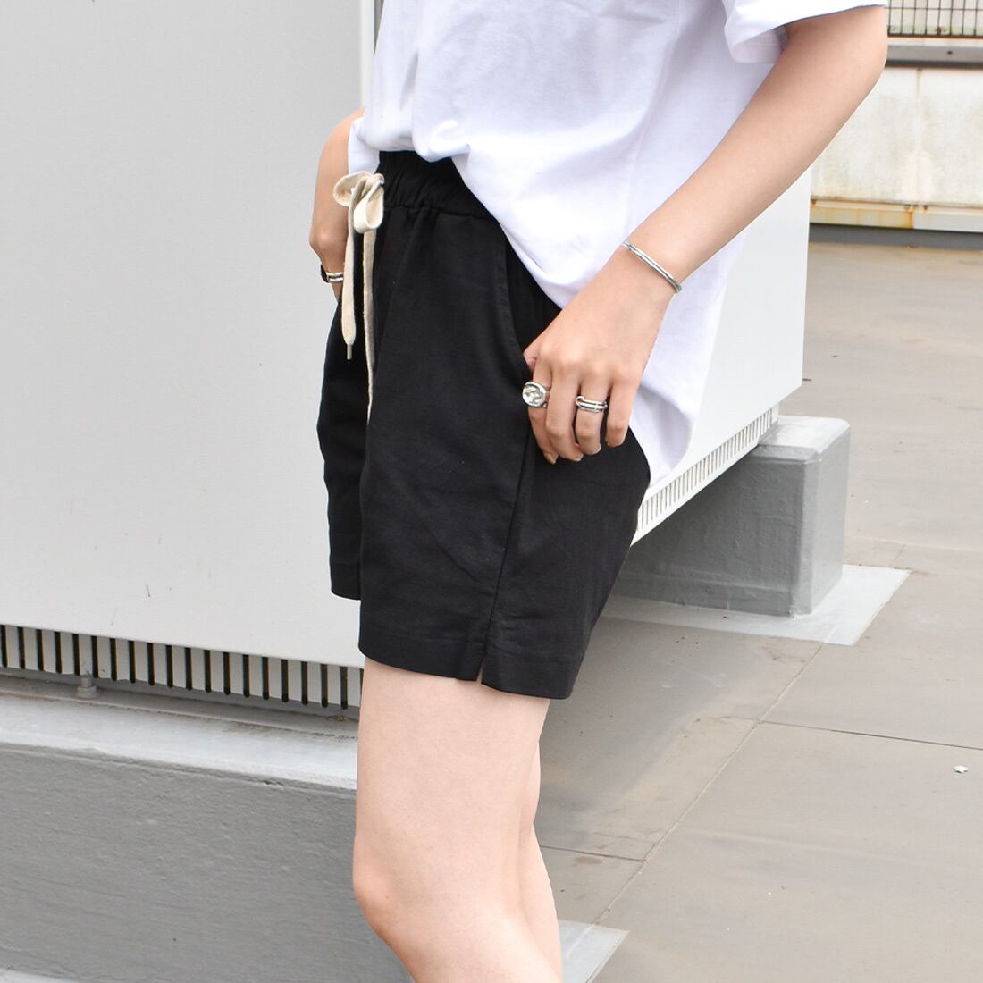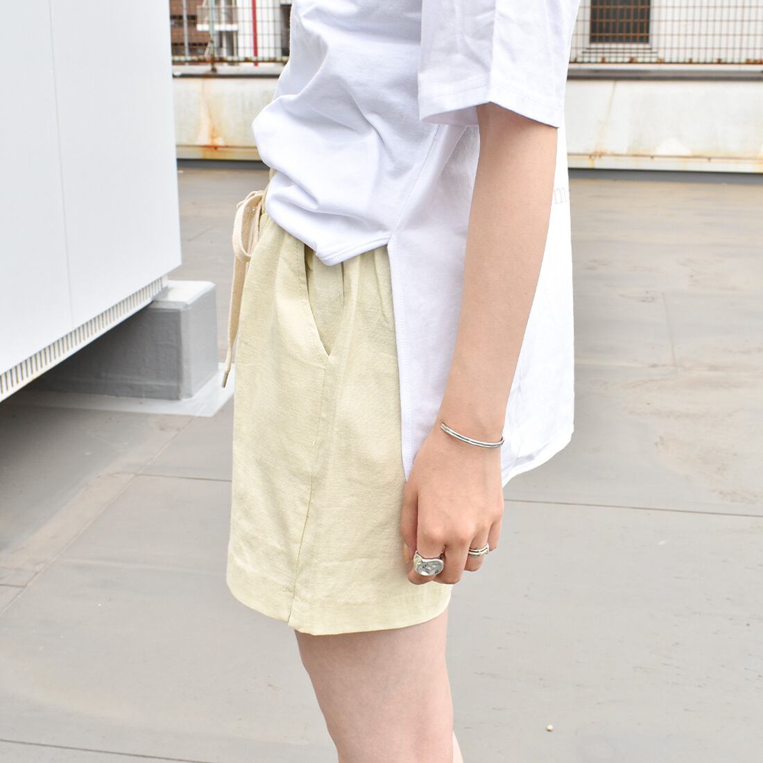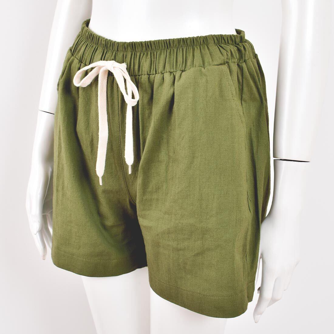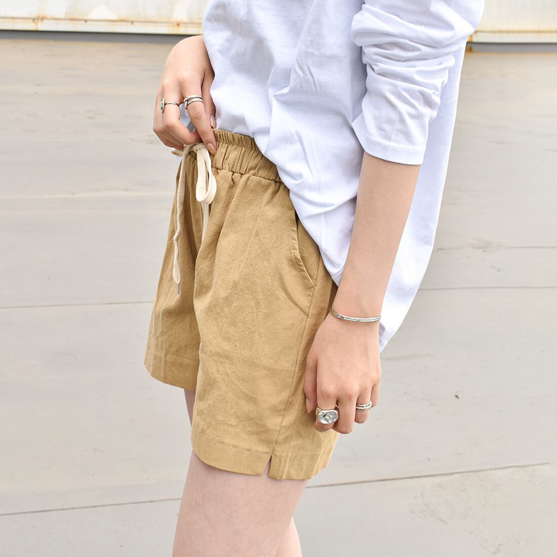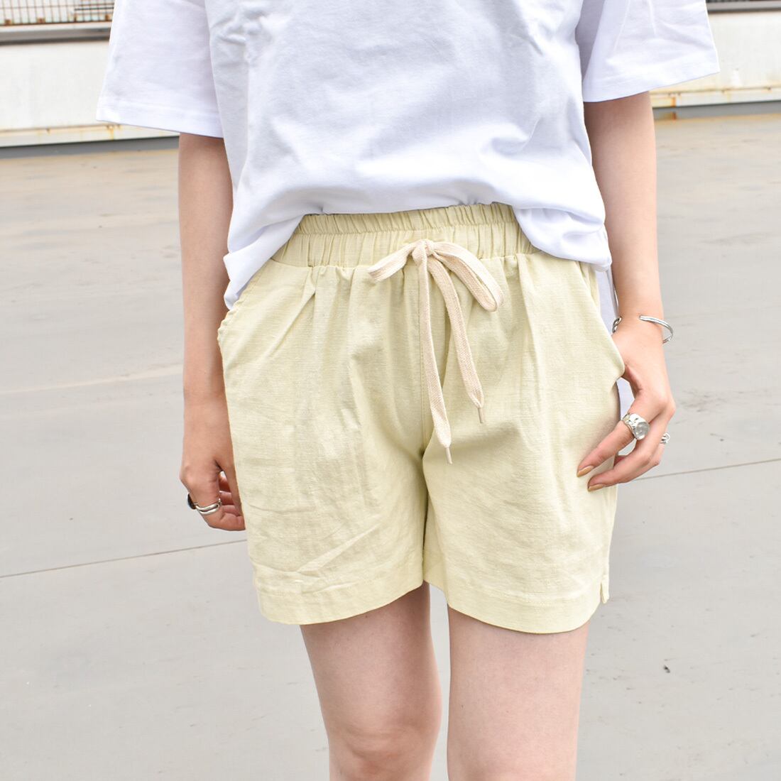 麻リネン混ウエストゴムショートパンツ(mk116)