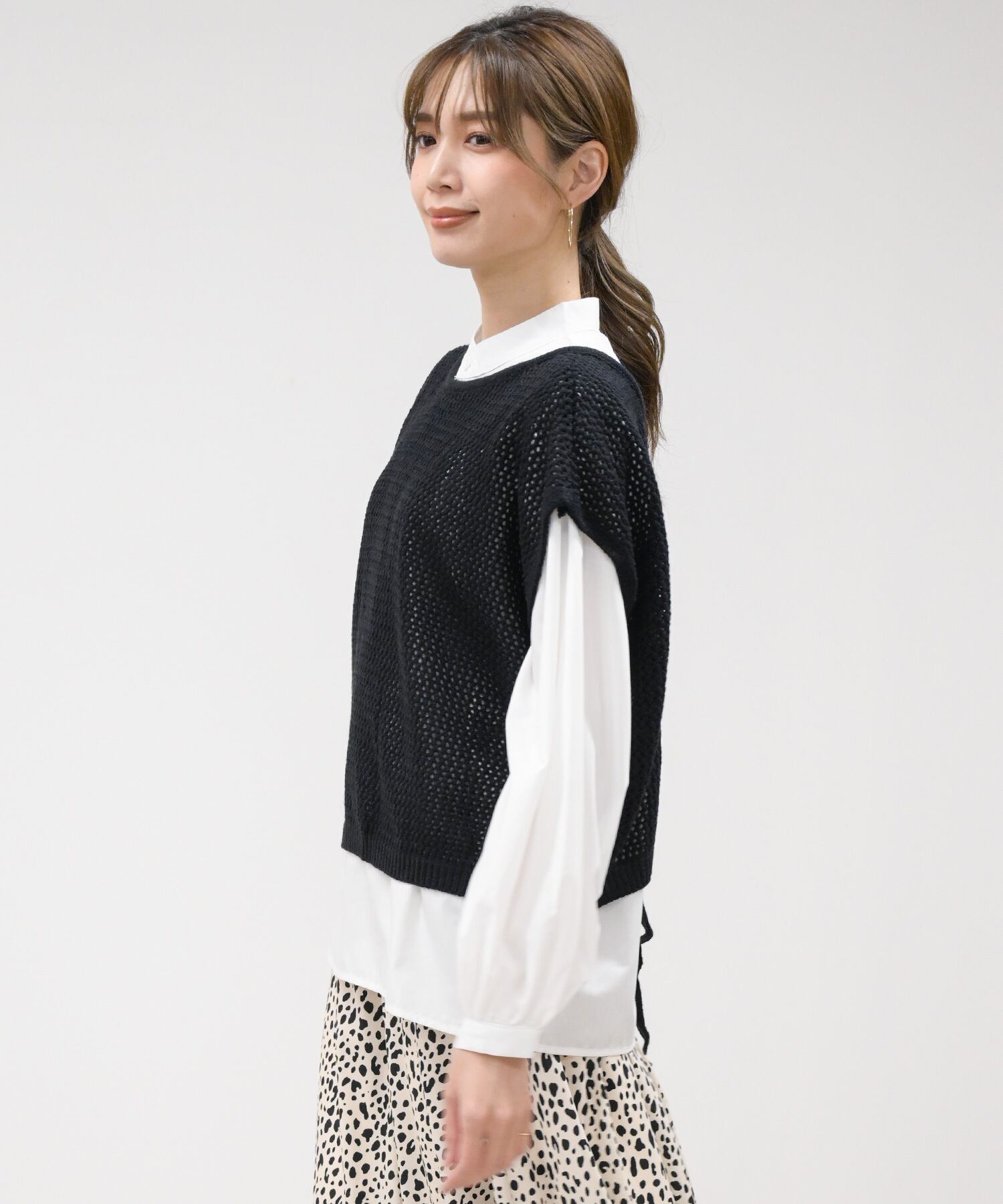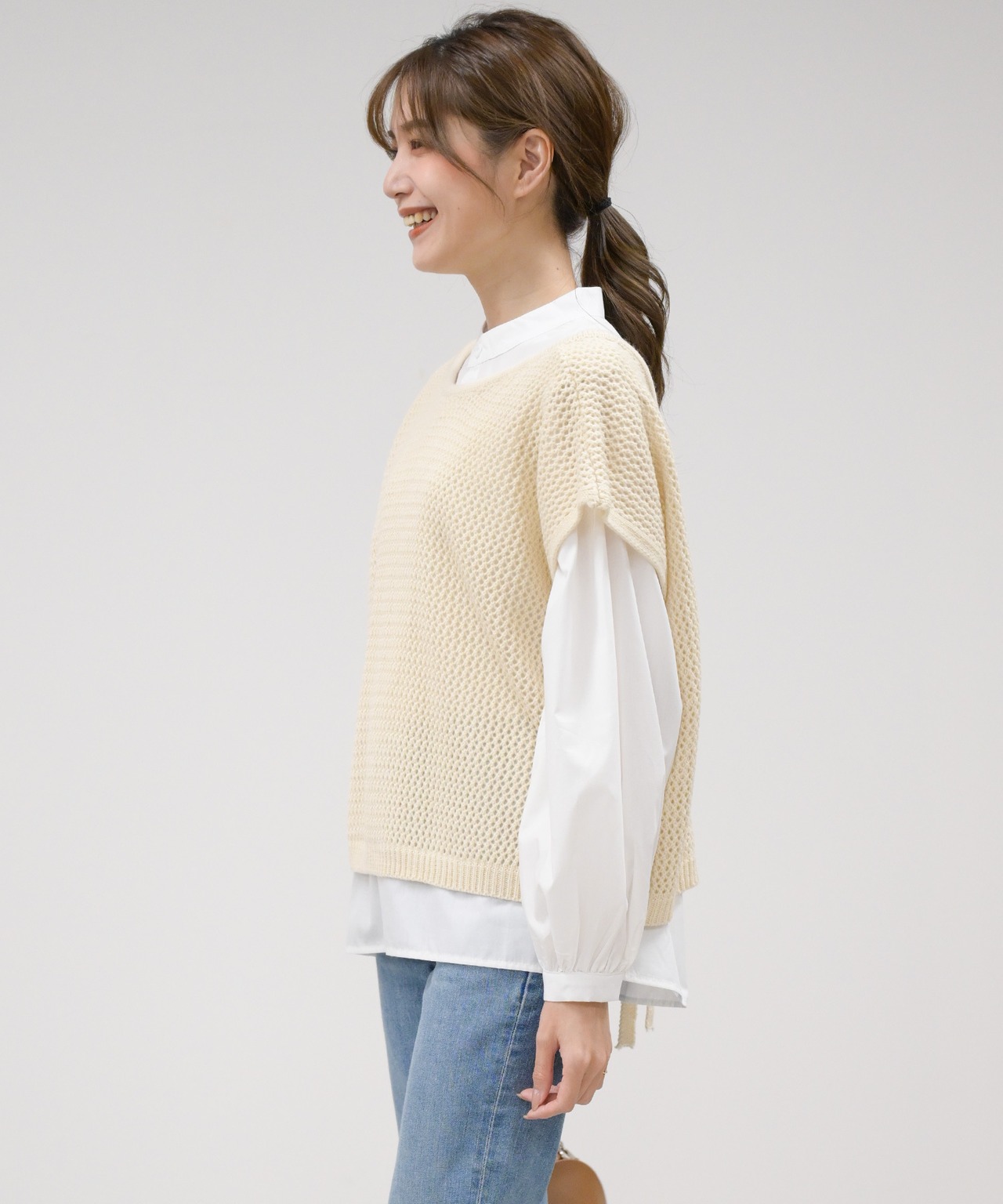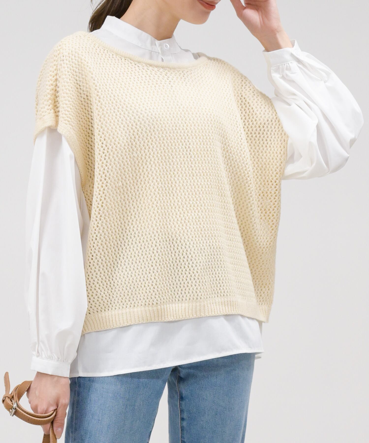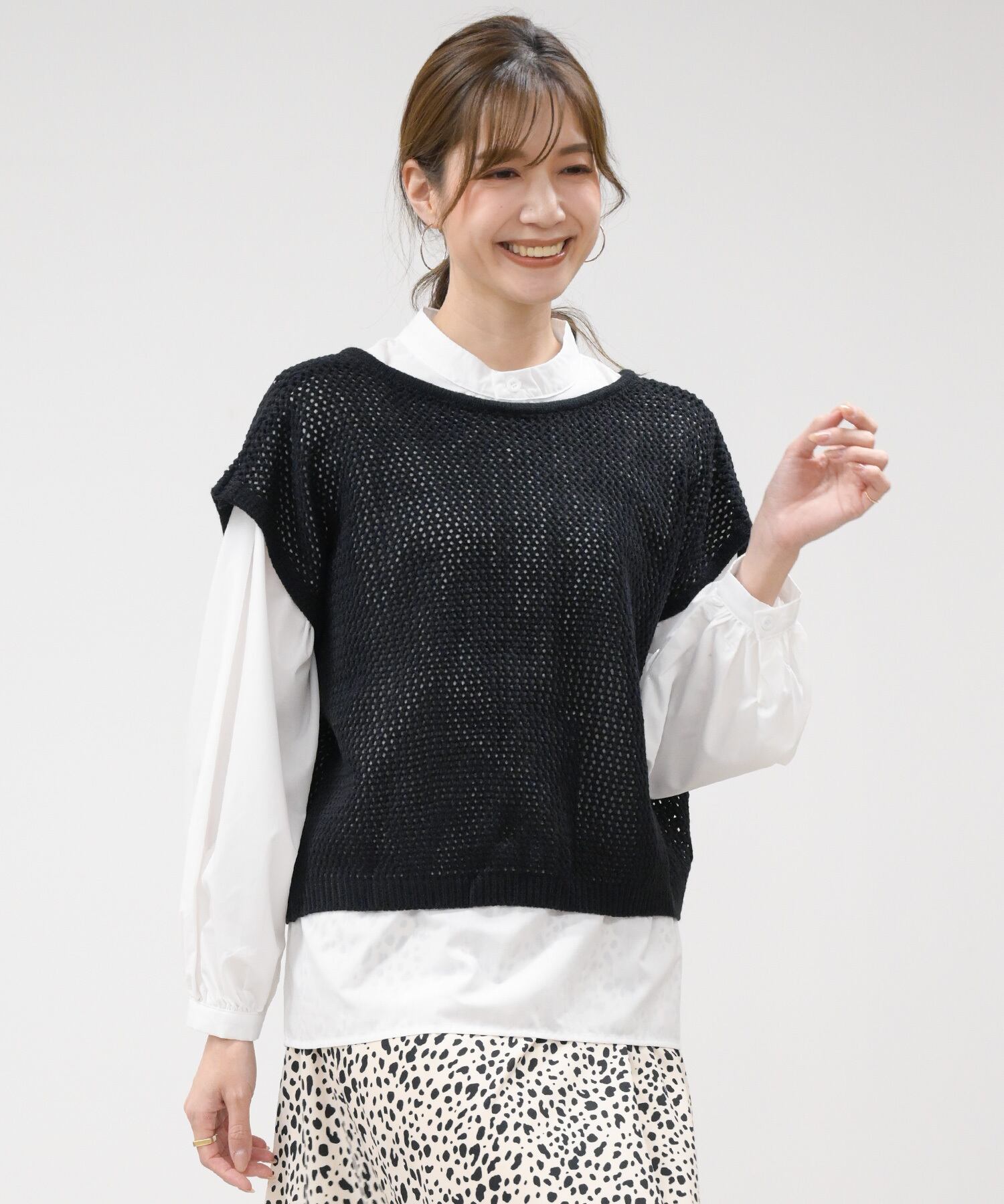ゆるかわでフェミニンなレイヤードニットは幅広いボトムスと相性抜群です。