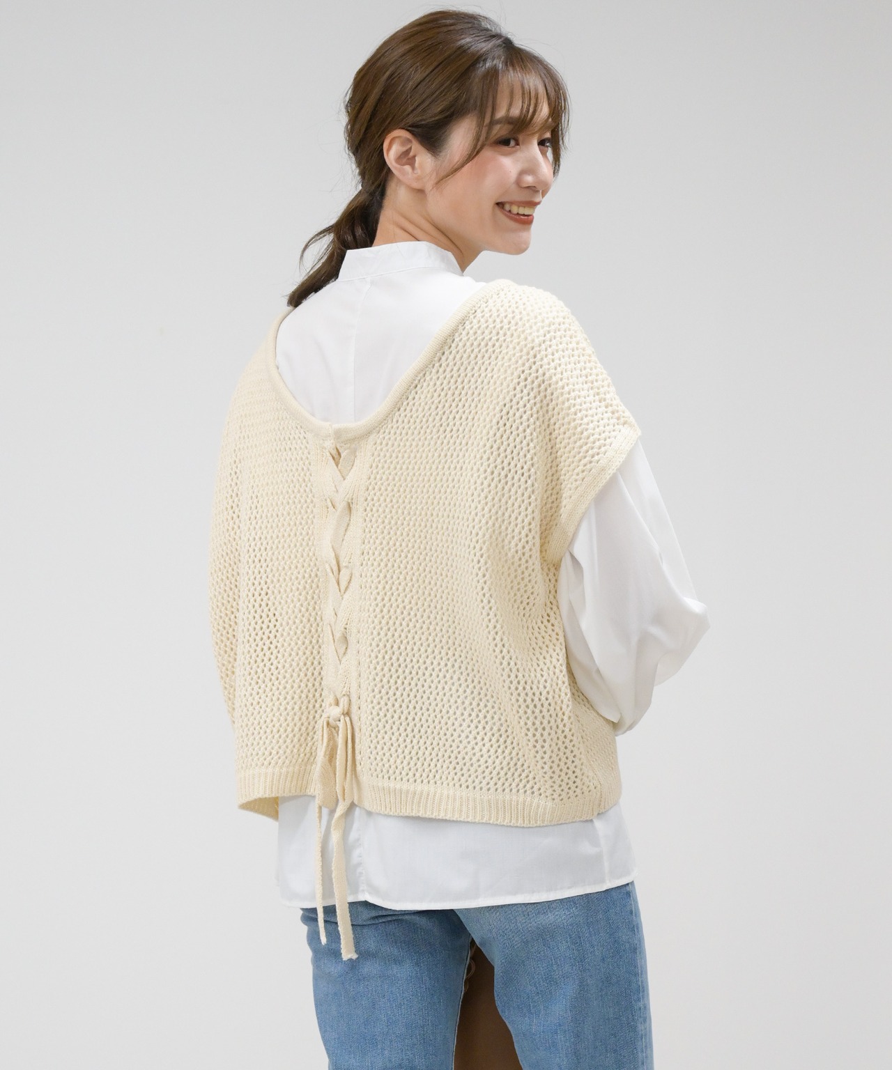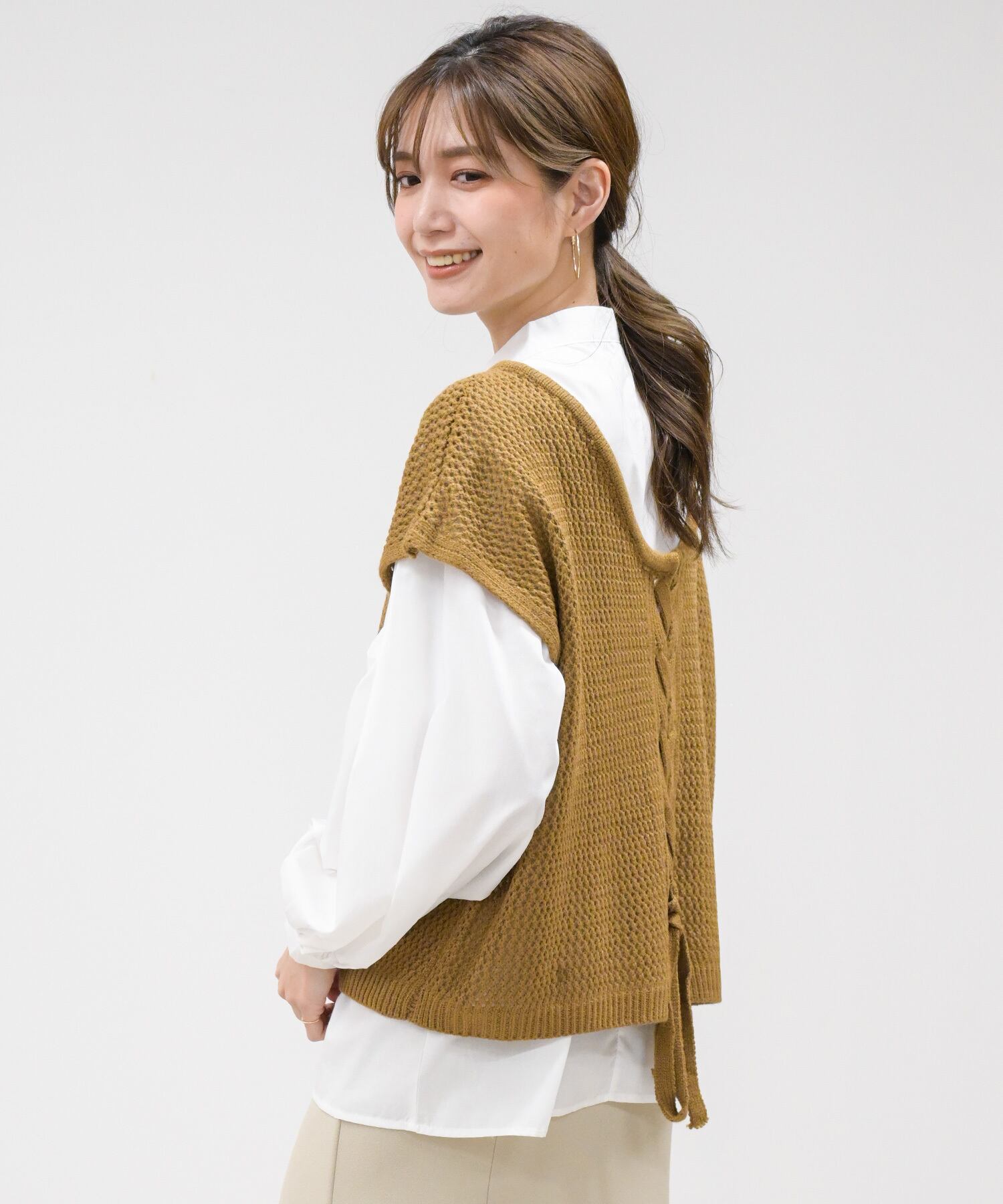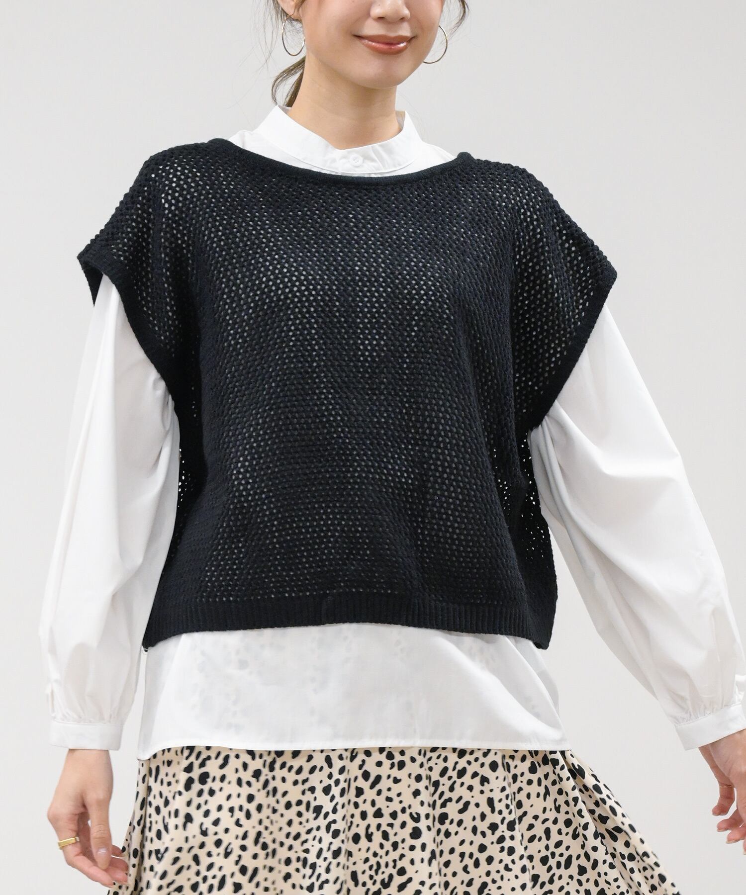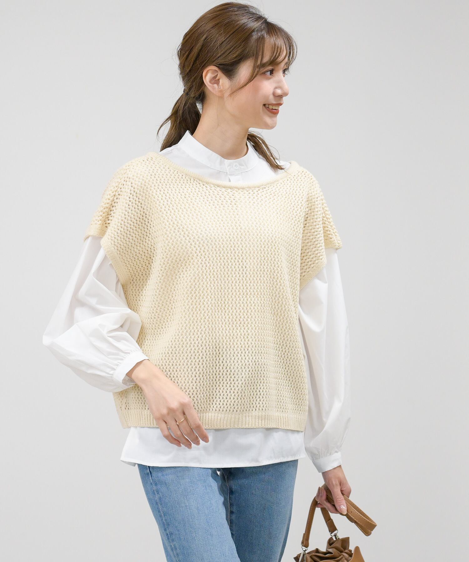 ゆるかわでフェミニンなレイヤードニットは幅広いボトムスと相性抜群です。