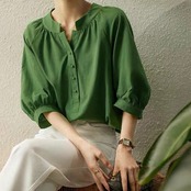 くるみボタンブラウス(am386)