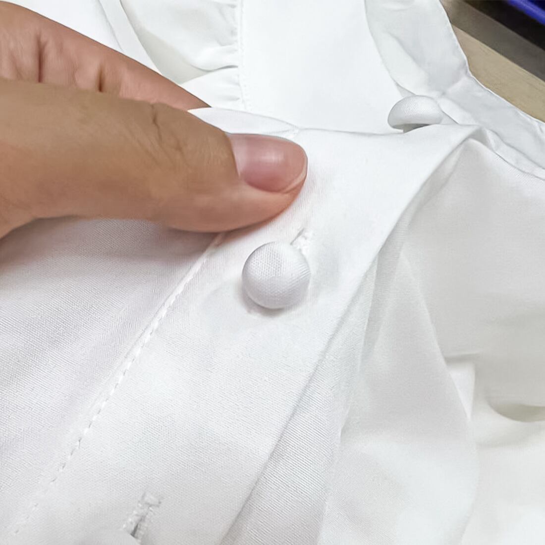 くるみボタンがアクセントに。