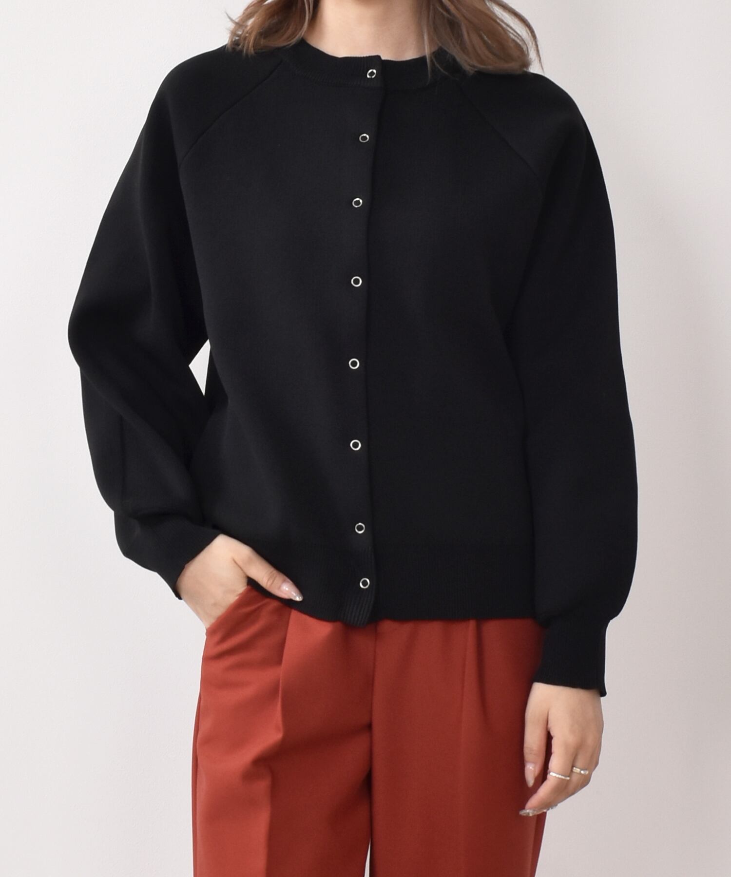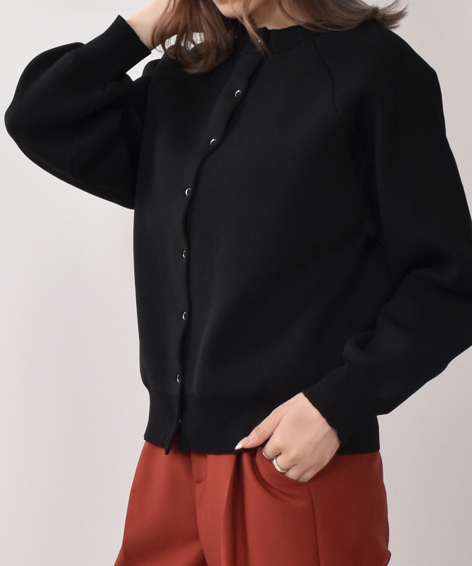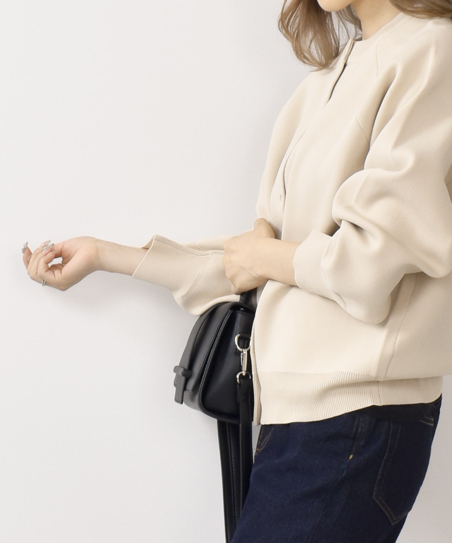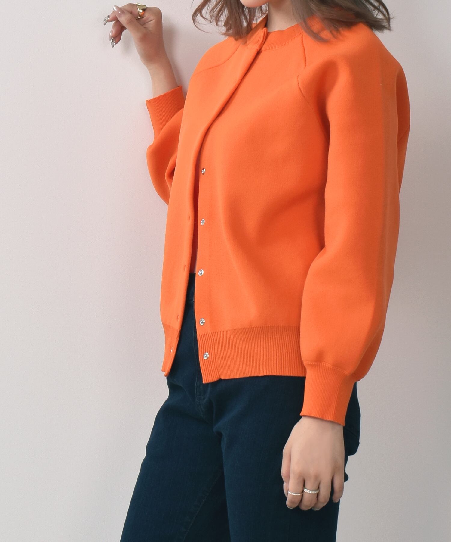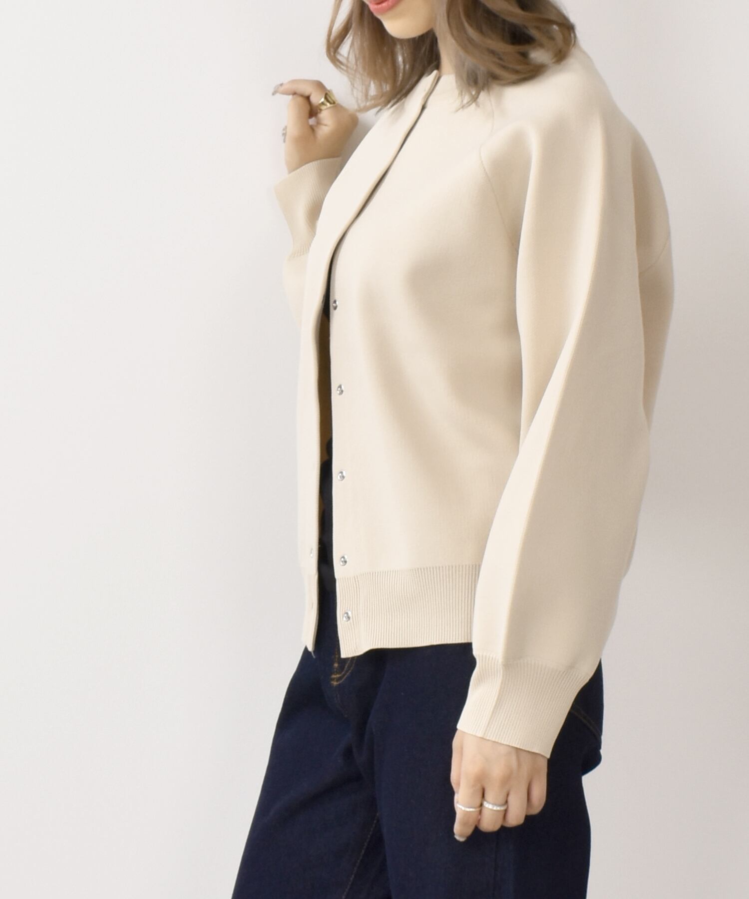 ボリューム感のあるシルエットは、細身のボトムスを合わせた着こなしがおすすめです。