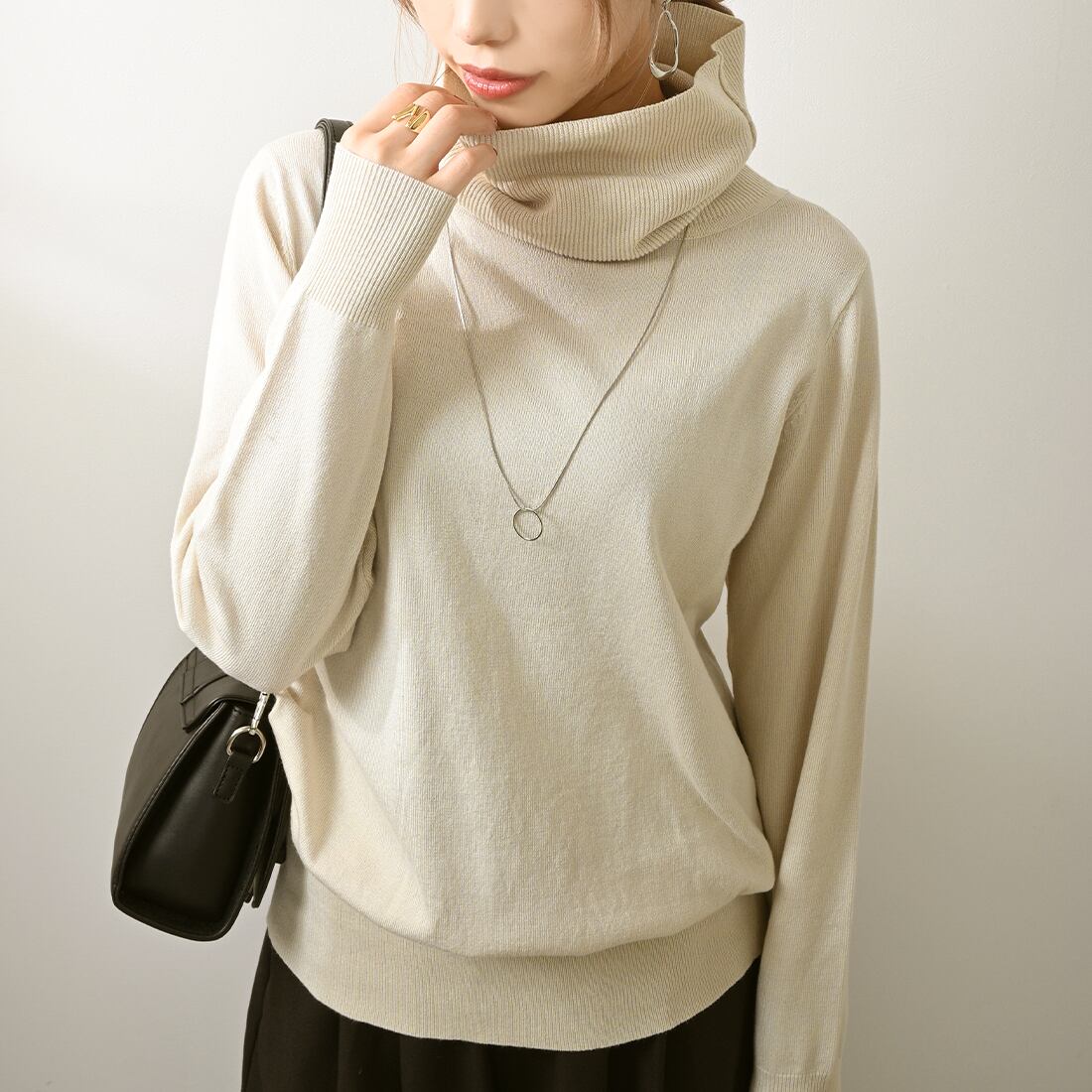 ゆったりとした首回りと、くしゅ感がかわいいニットです。
