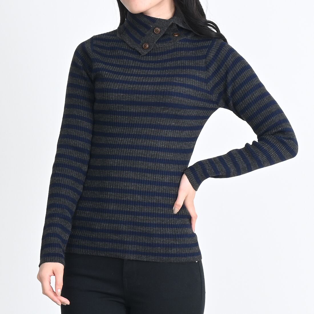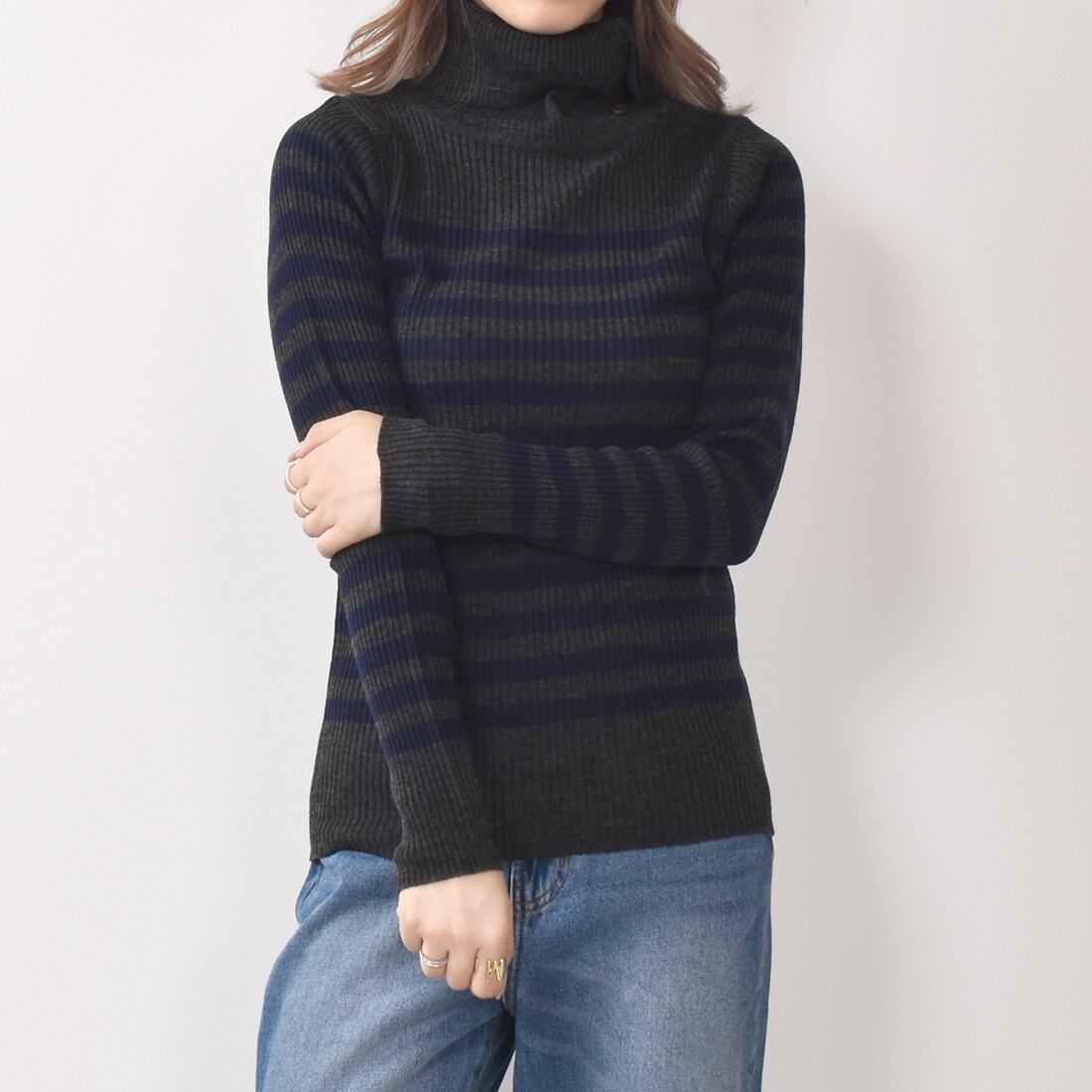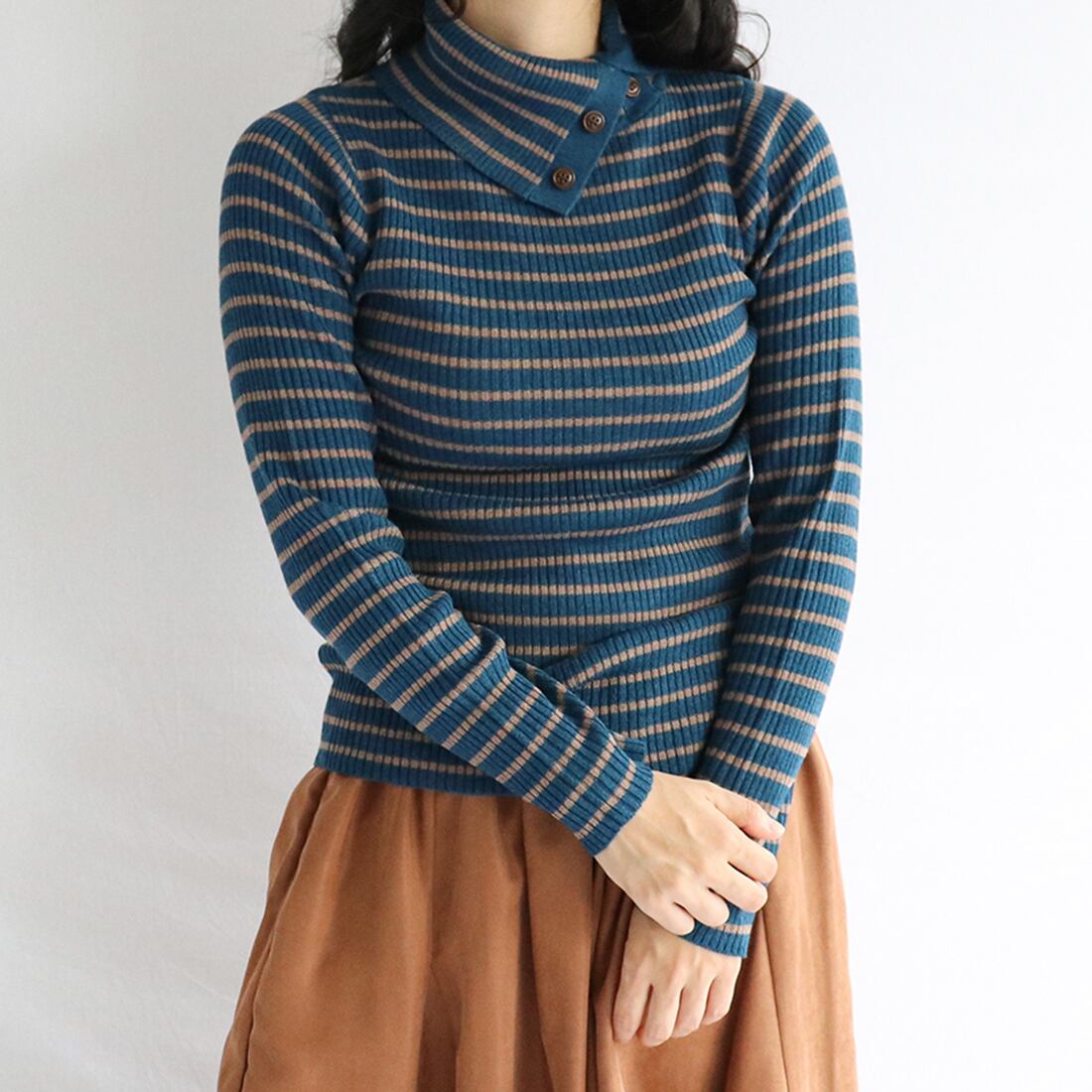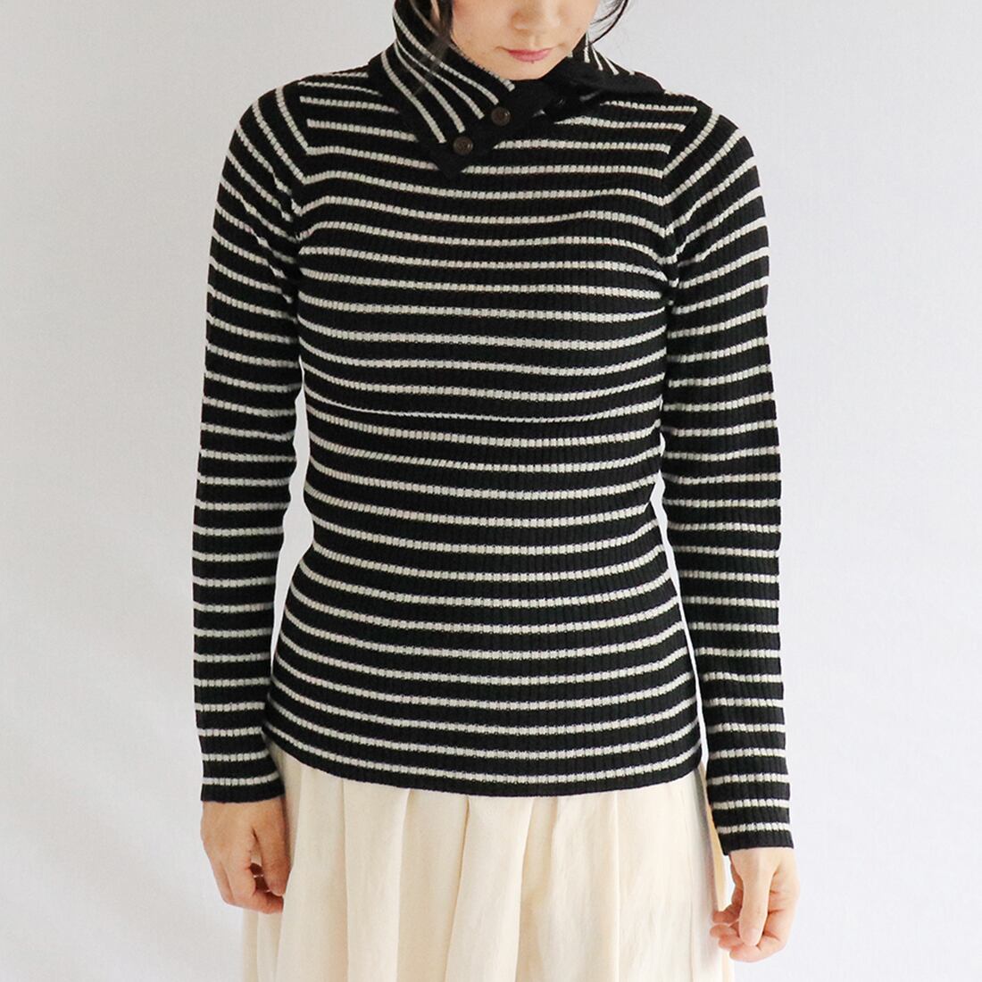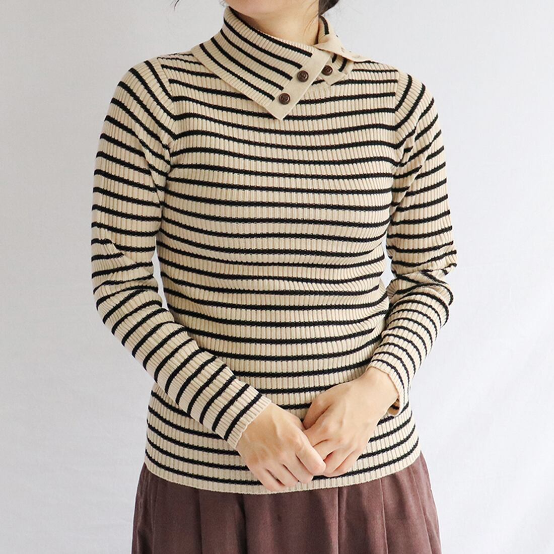 パネルボーダードクターネックニット(cap019)