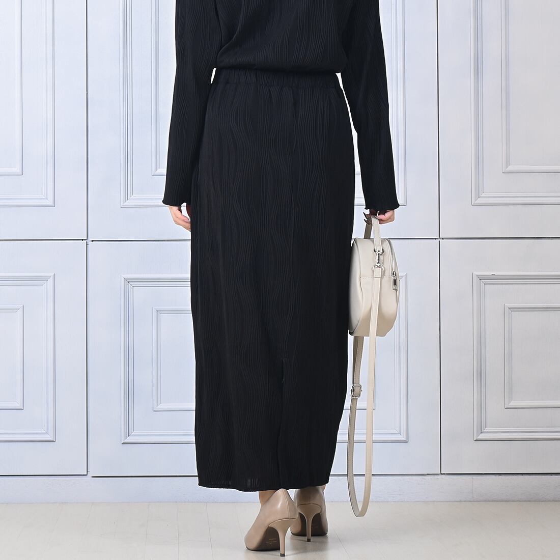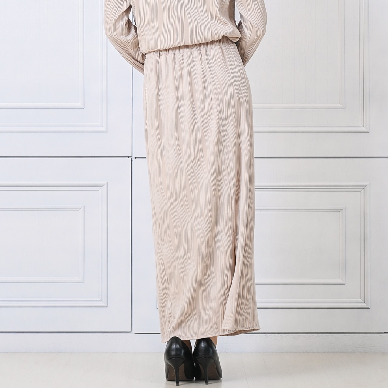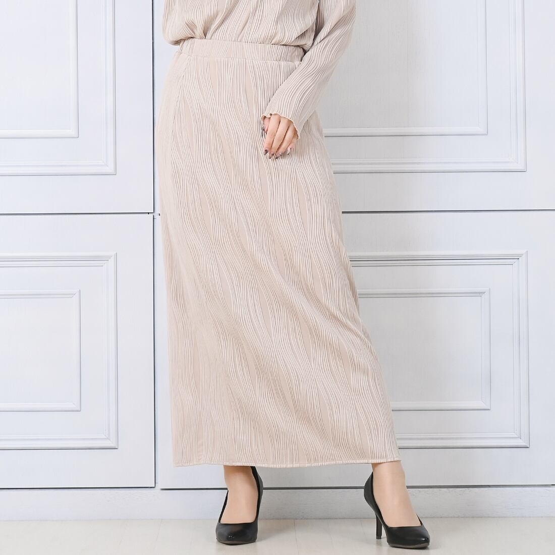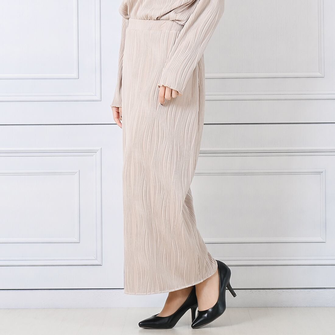 ウェーブプリーツロングスカート(be165)