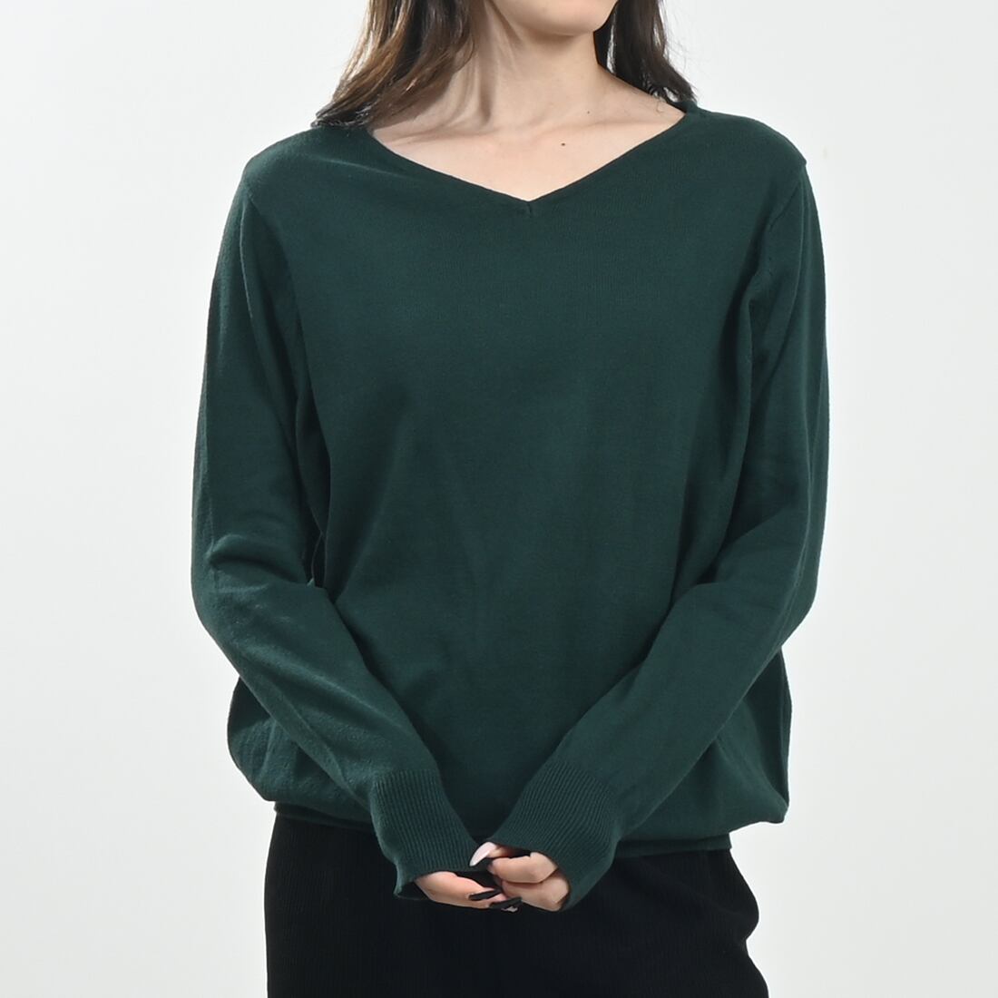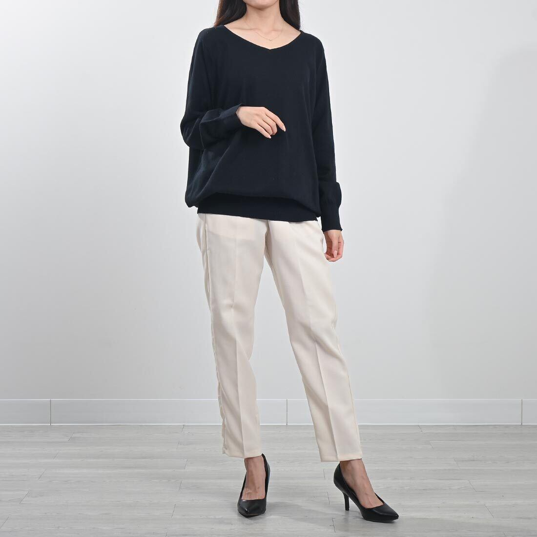 ふんわりとした着心地が嬉しいシンプルなVネックニットです。