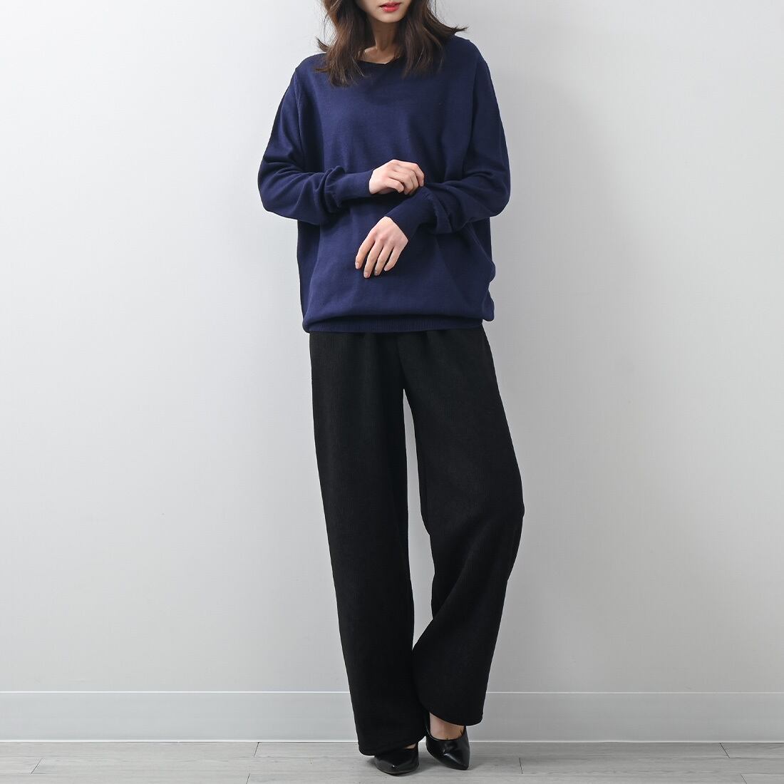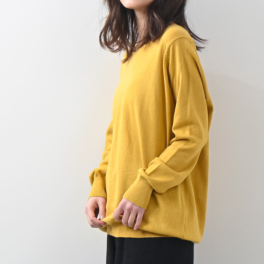 Vネックワイドリブ綿ニット(op286)