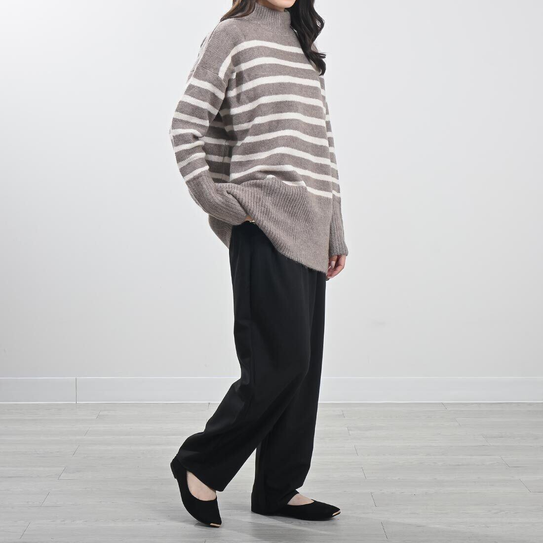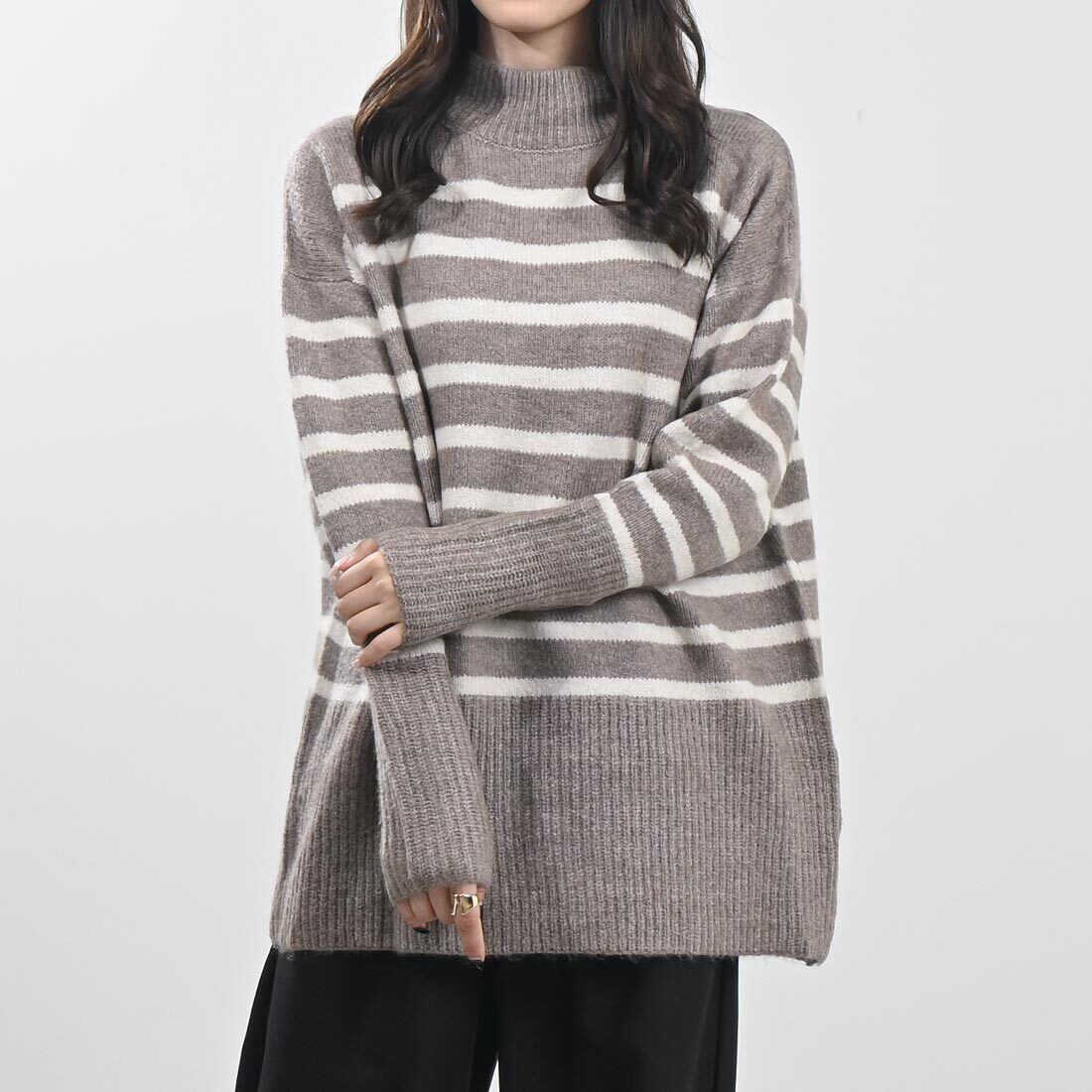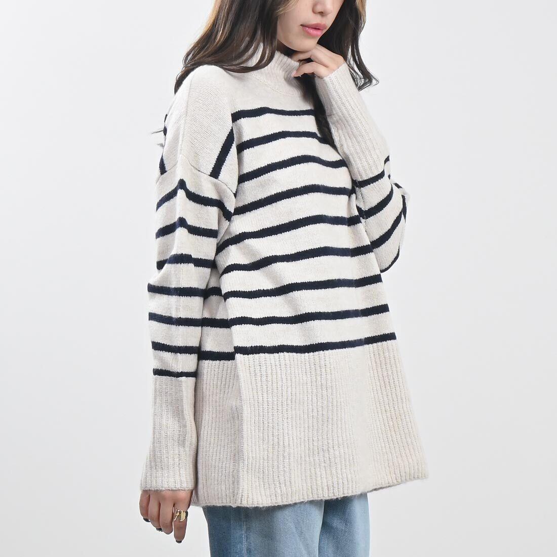 オーバーサイズタートルボーダーニット(be183)