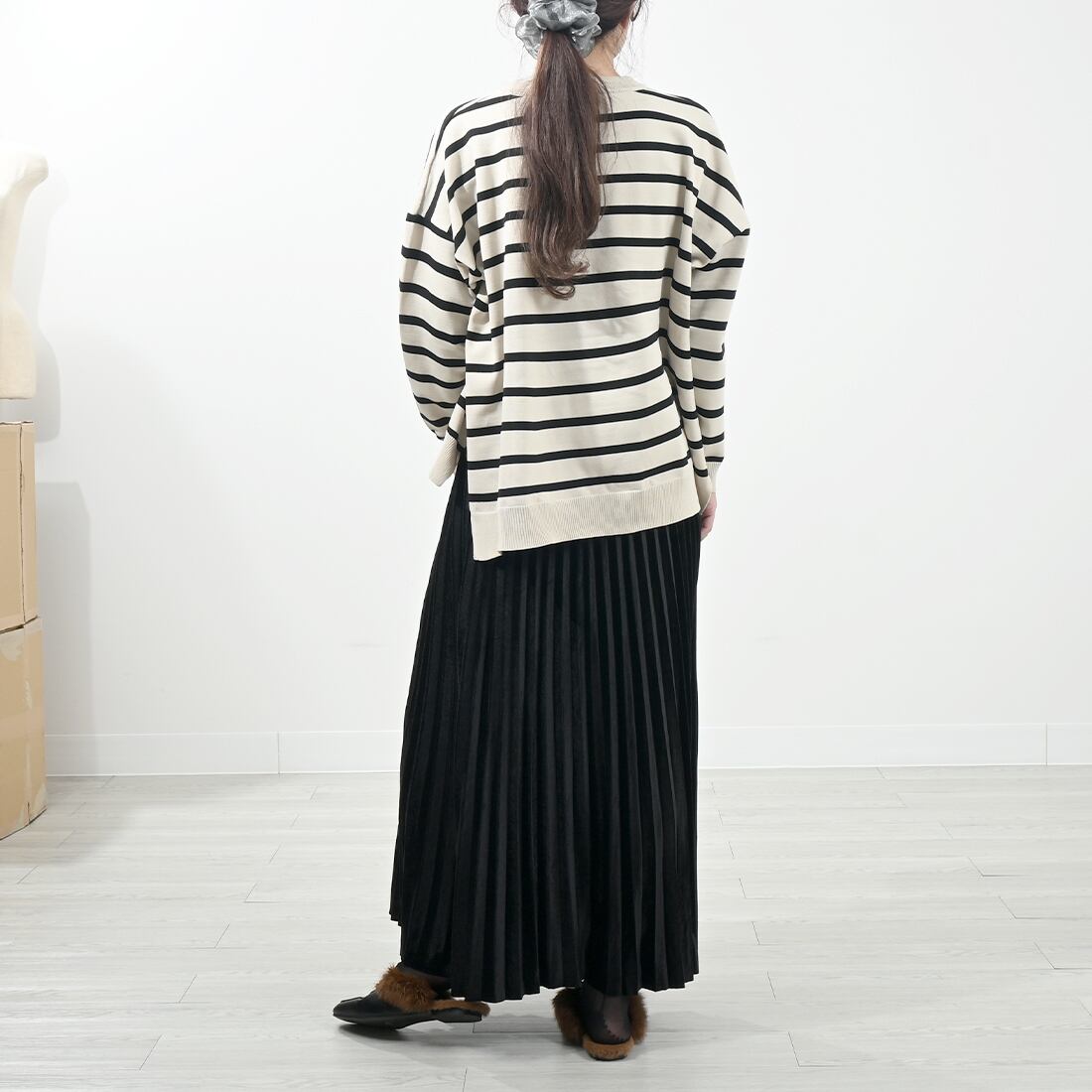 あたたかみのあるストレッチベロア素材で、スルっと落ち感あるシルエット。