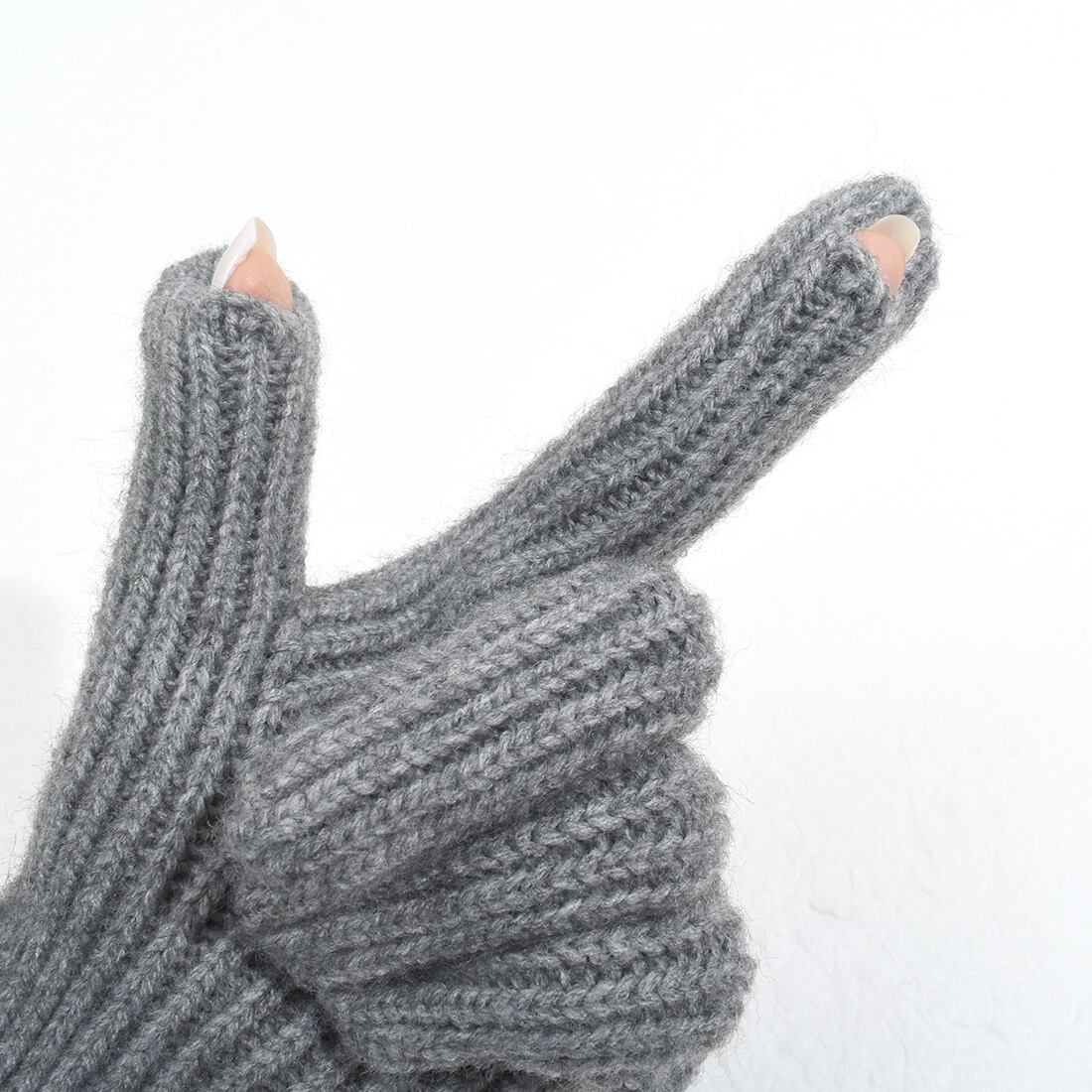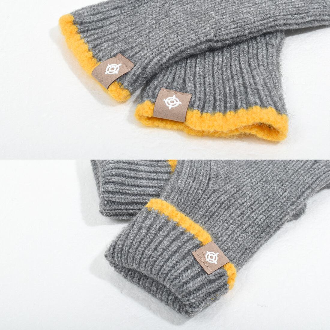 ピスネーム付きツートン配色ロングニット手袋(z043)