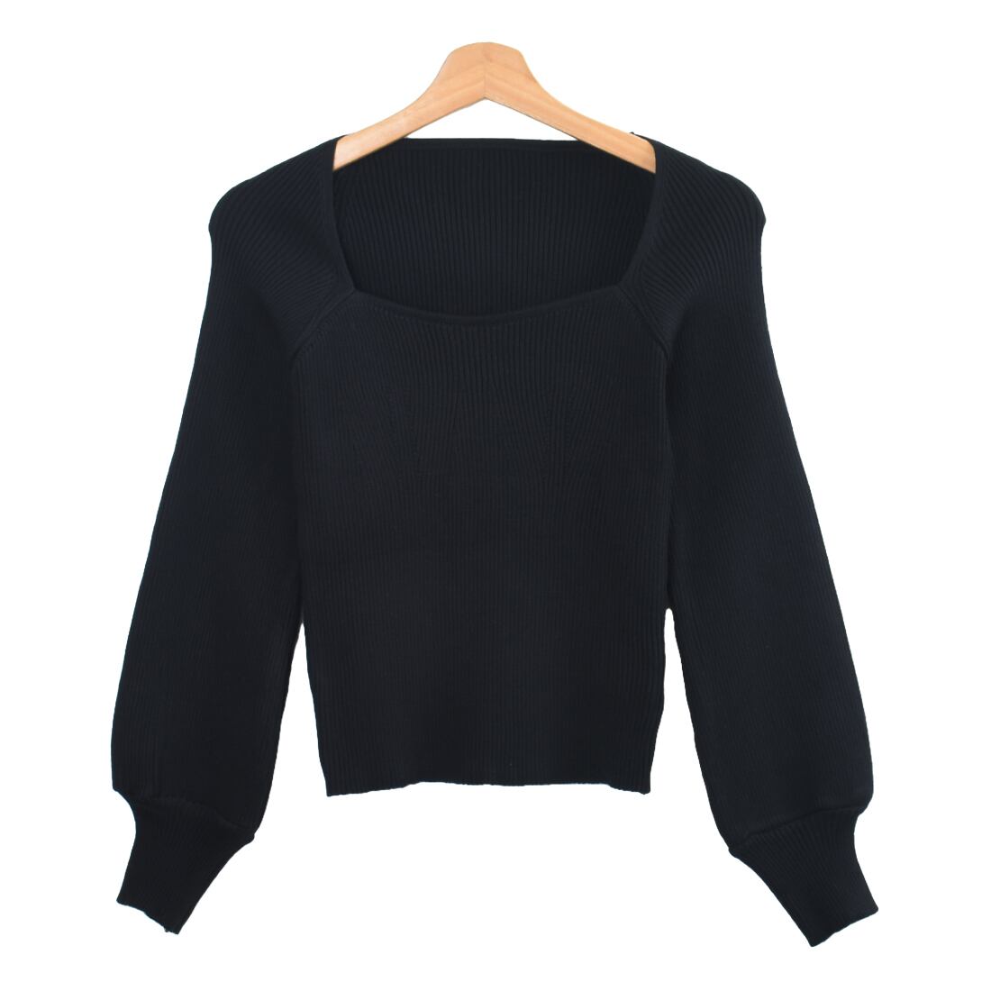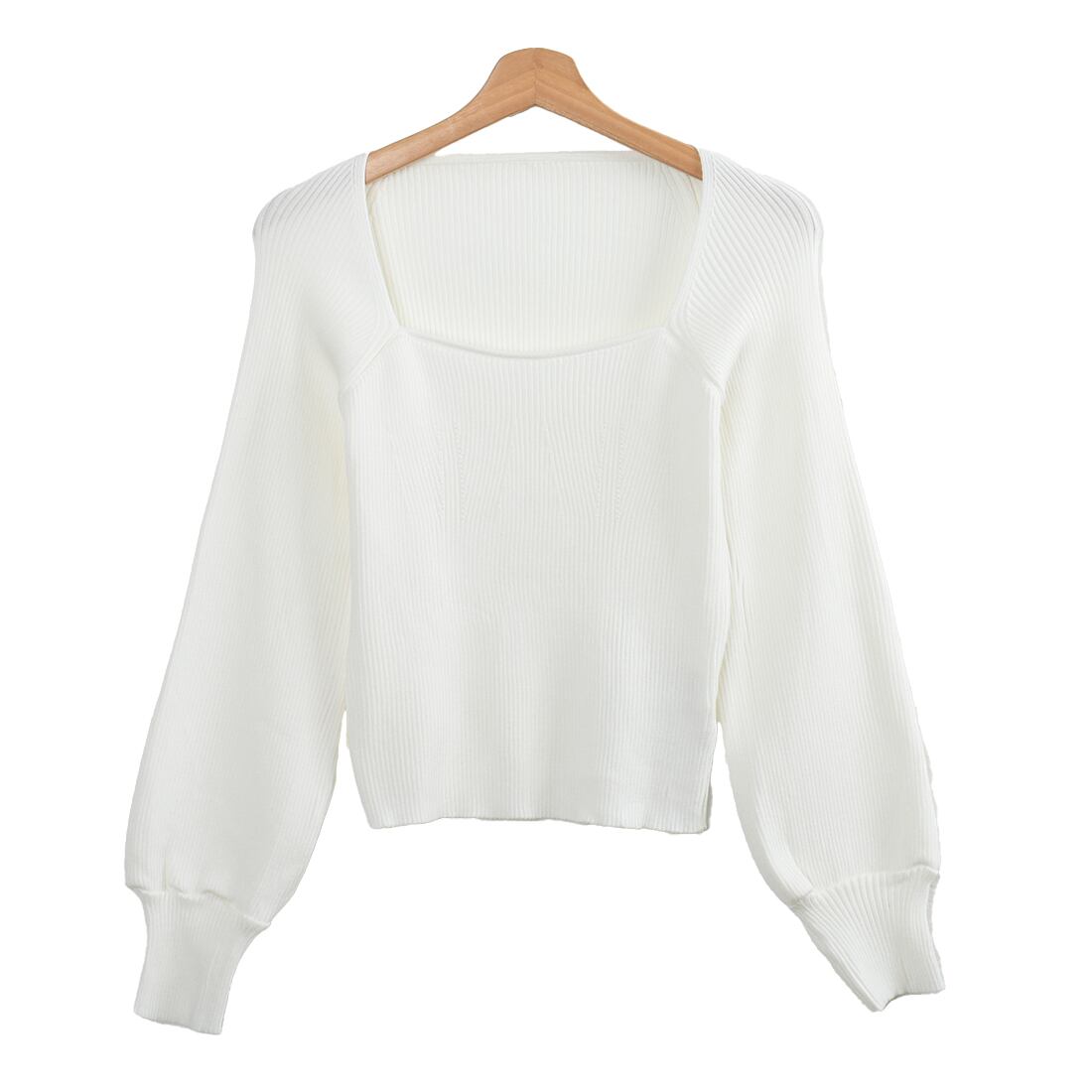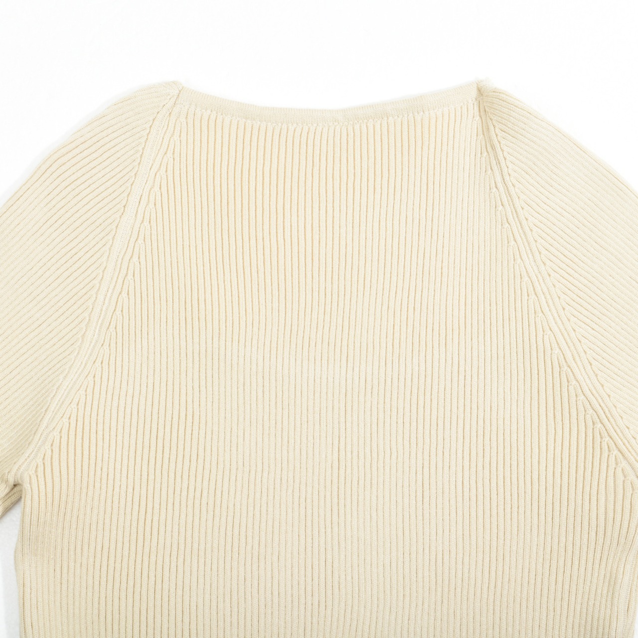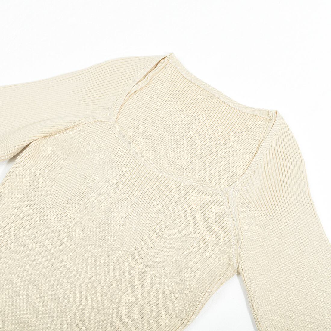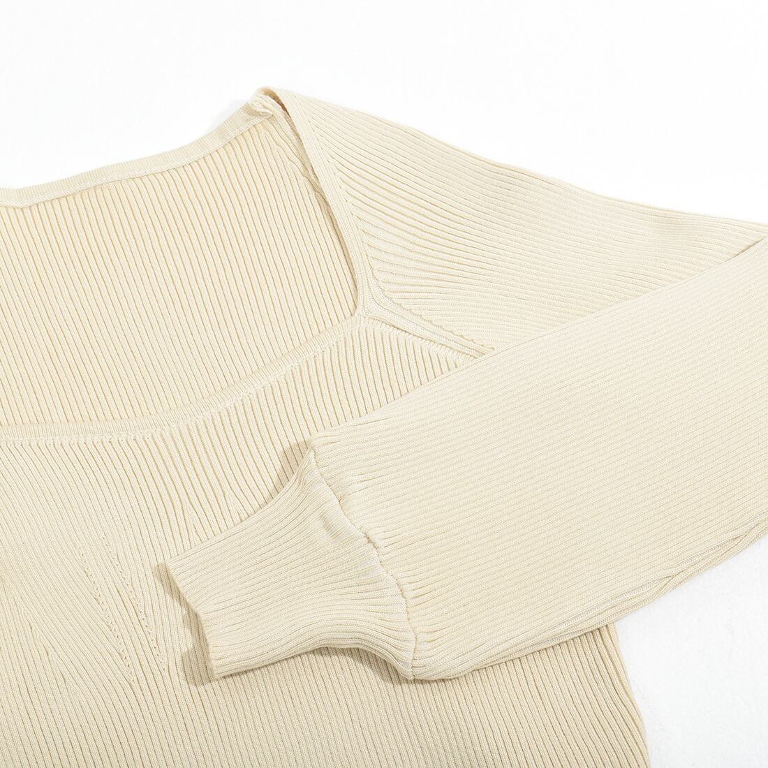 鎖骨が美しく映えるスクエアネックリブニットです。