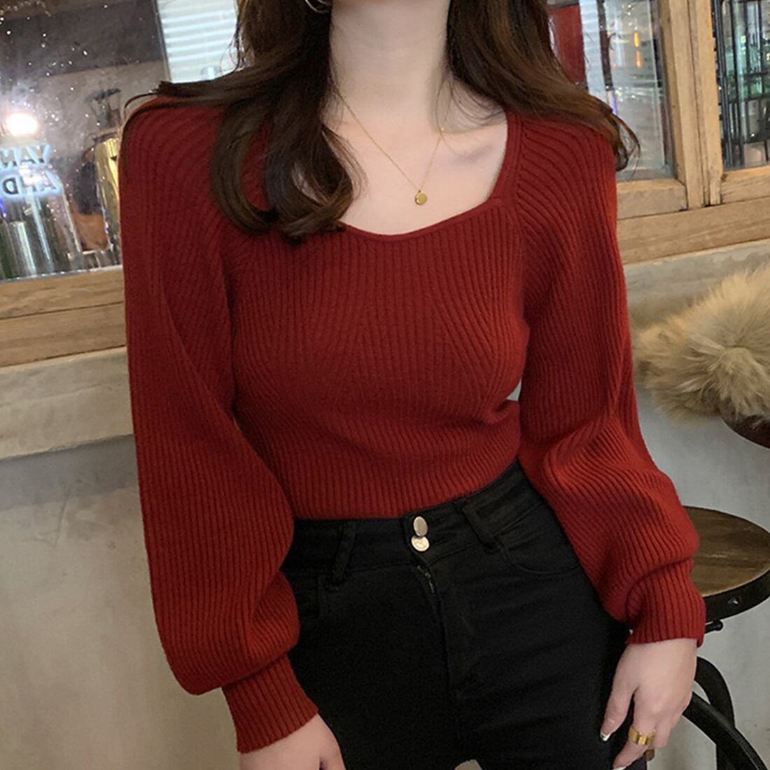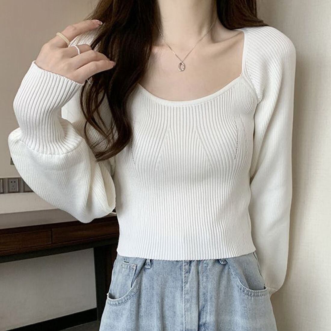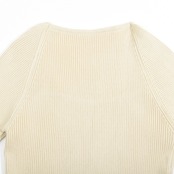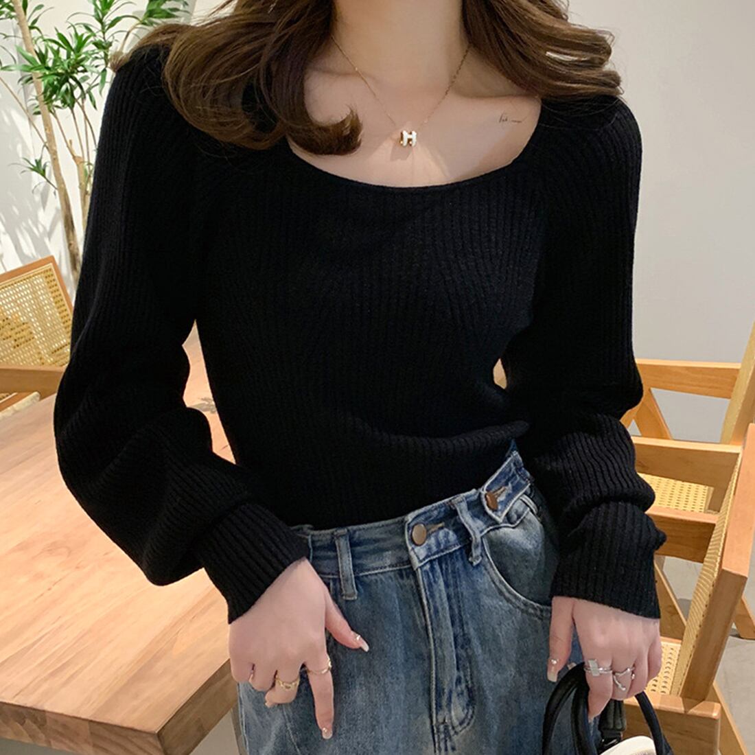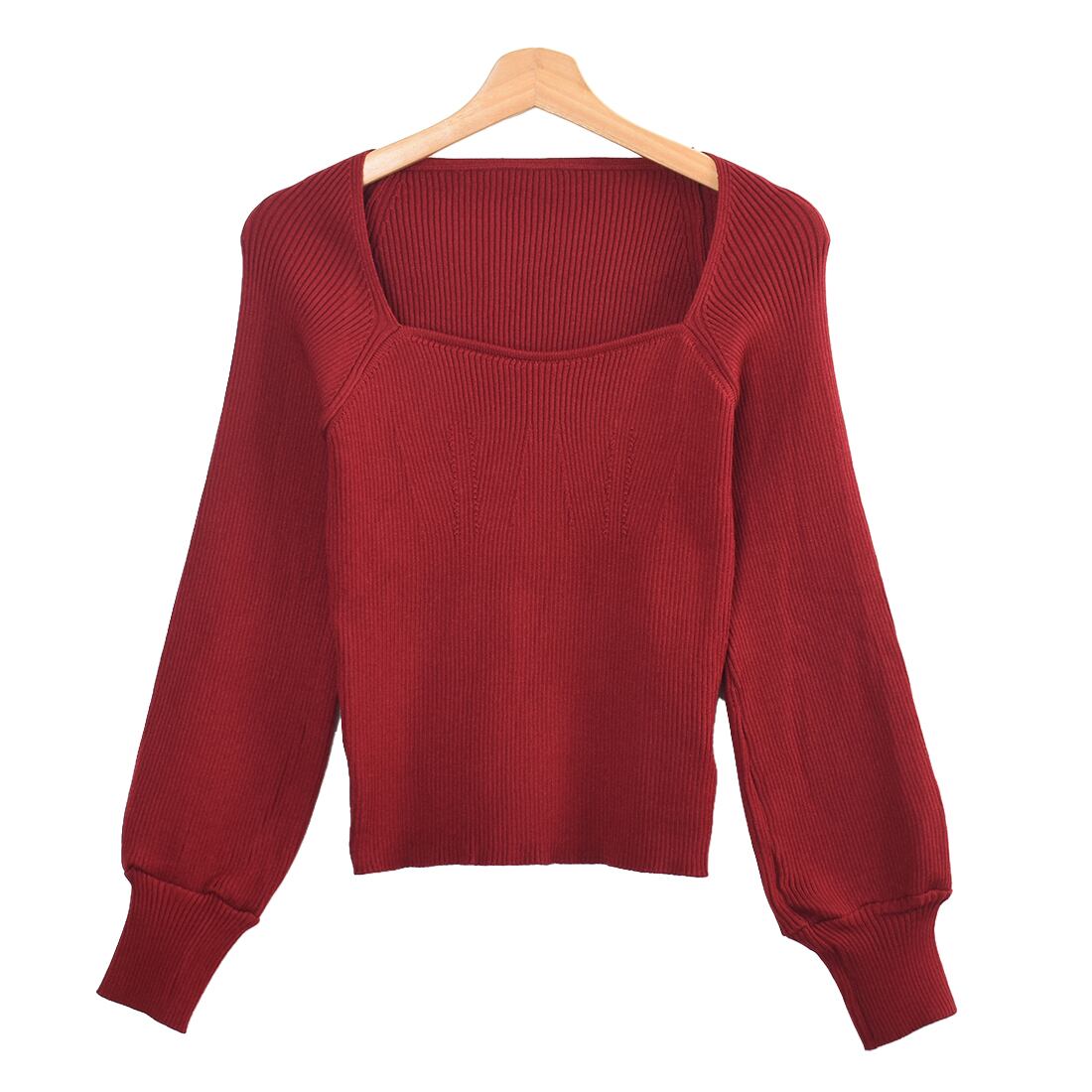 鎖骨が美しく映えるスクエアネックリブニットです。