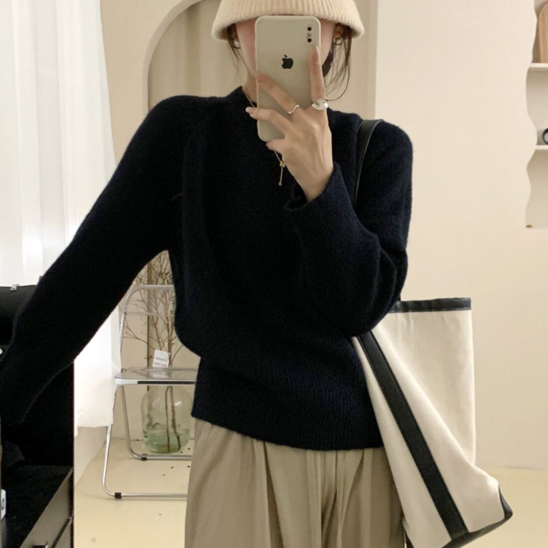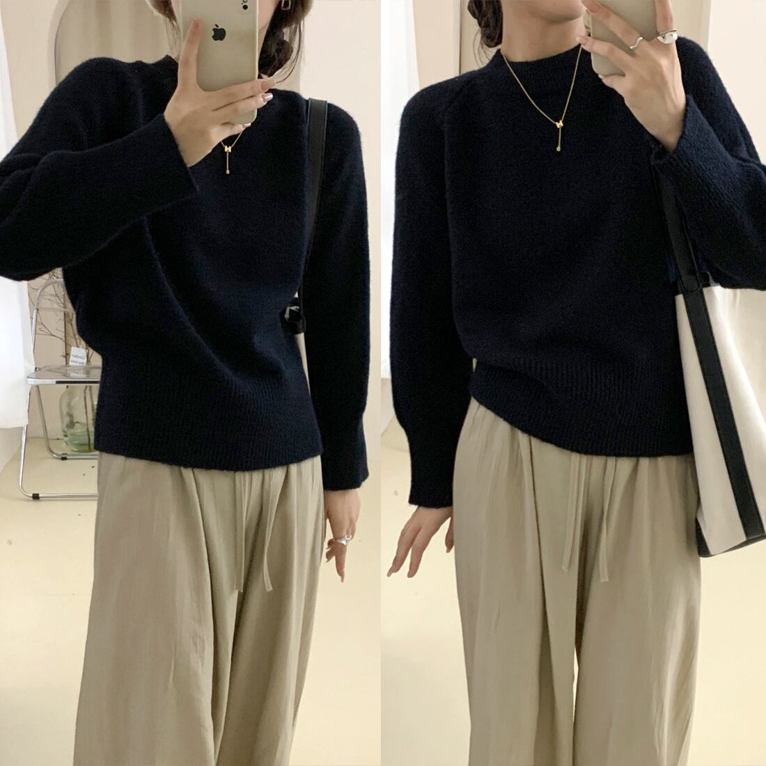 プチハイネックでスッキリとしたこなれ感のある印象に。