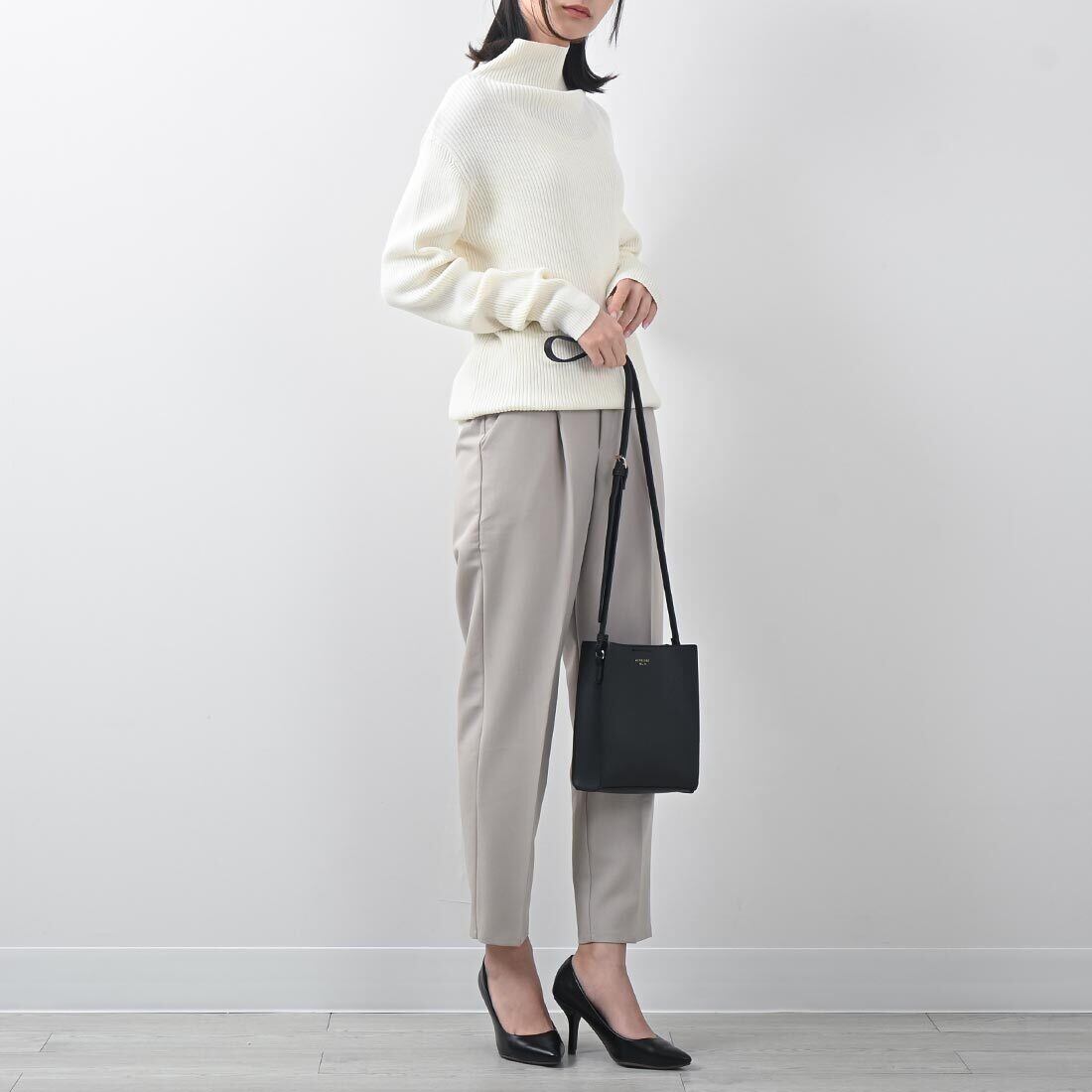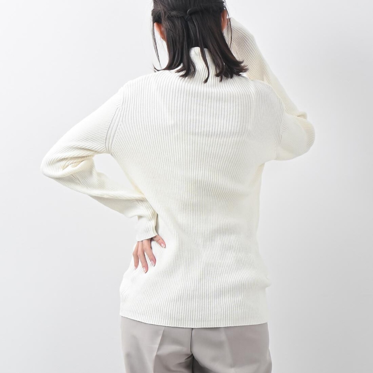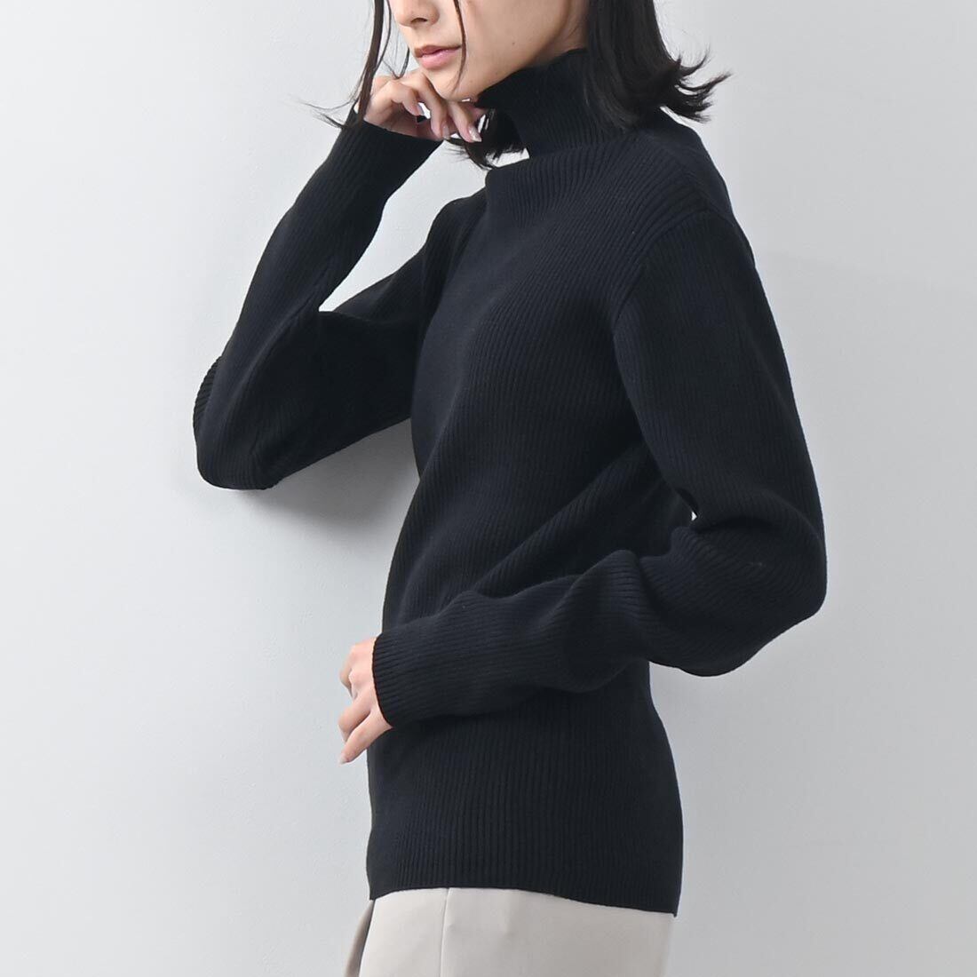 すっきりとした小顔効果のあるハイネック(タートルネック)ニットです。