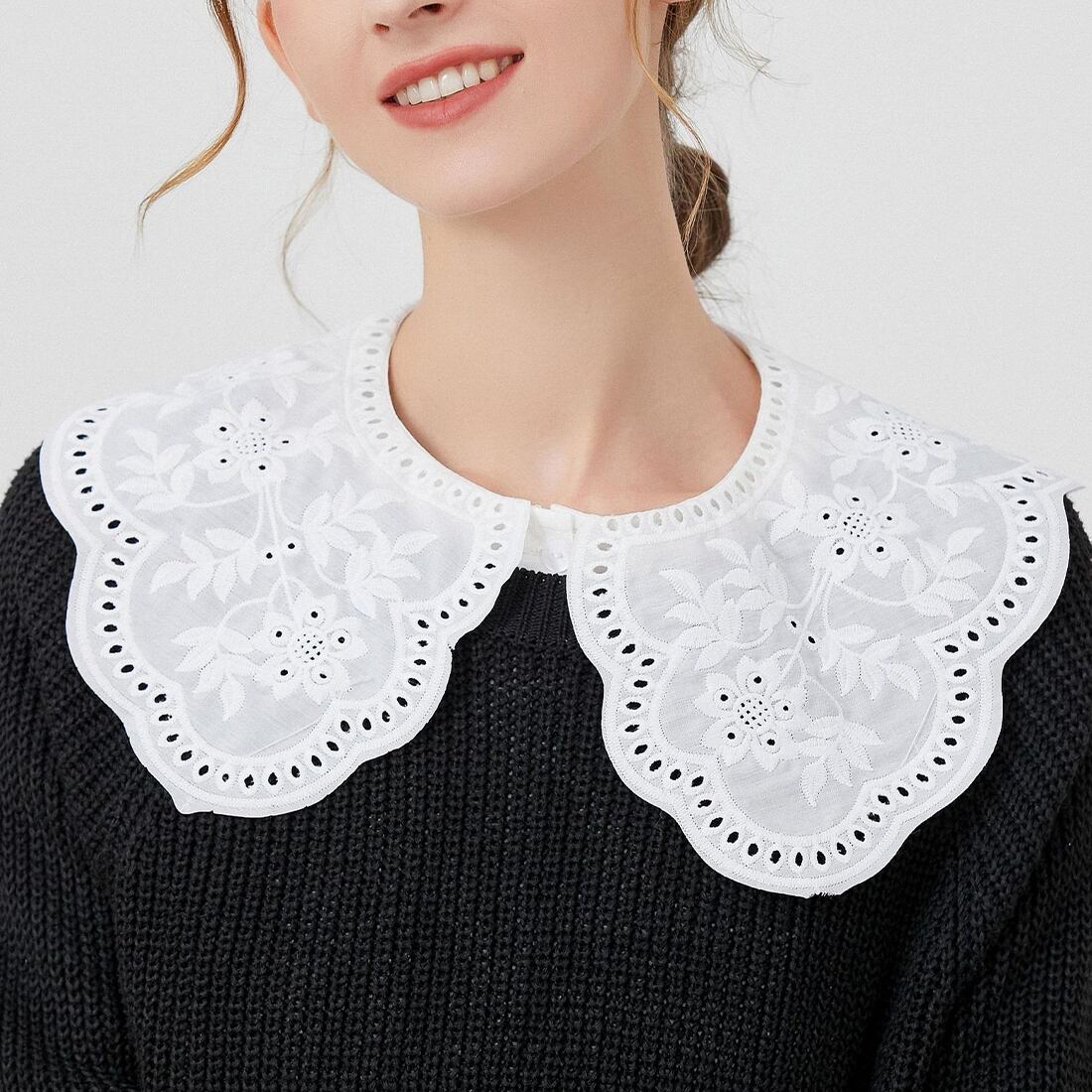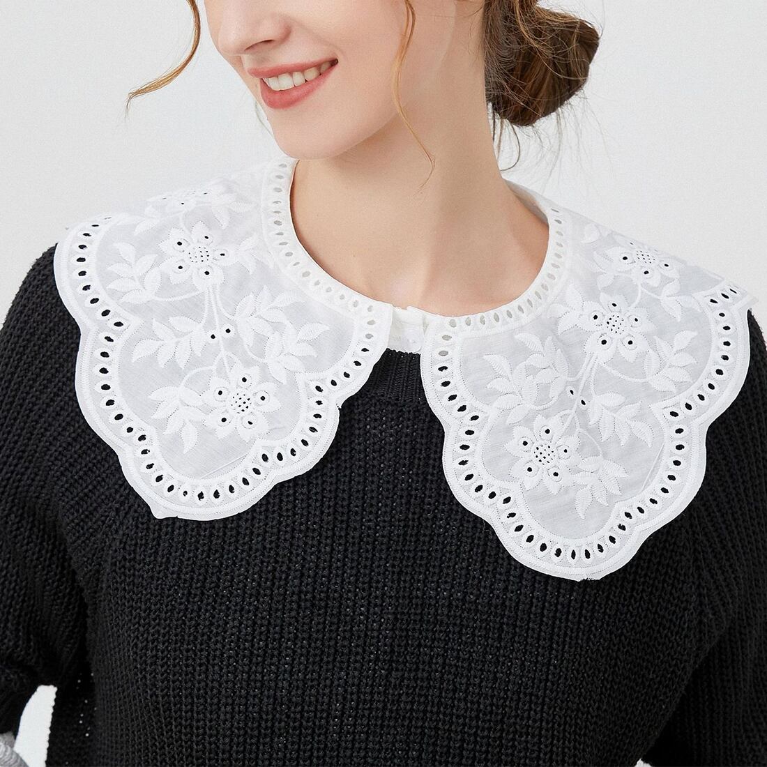 フラワーモチーフレーススカラップ付け襟(z083)