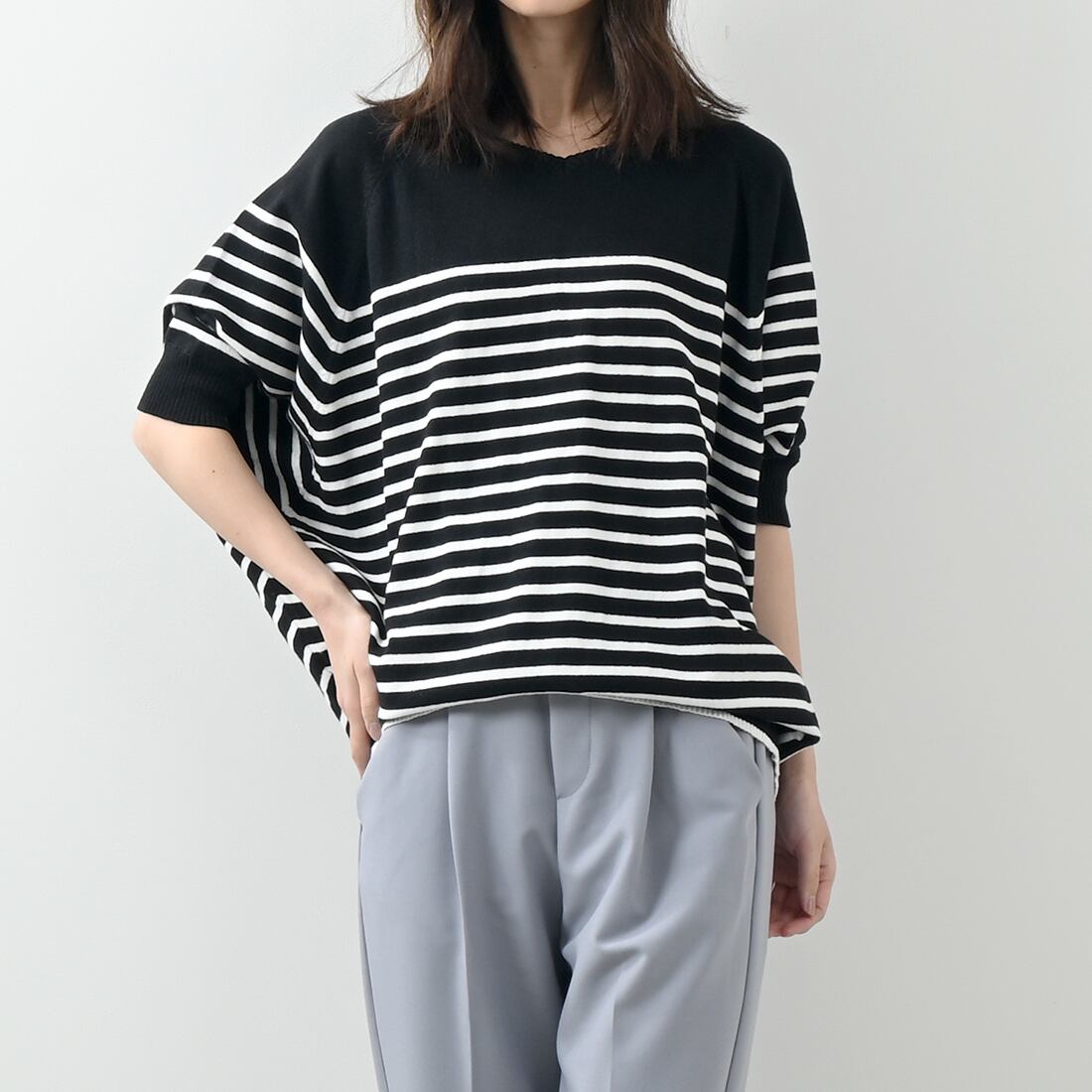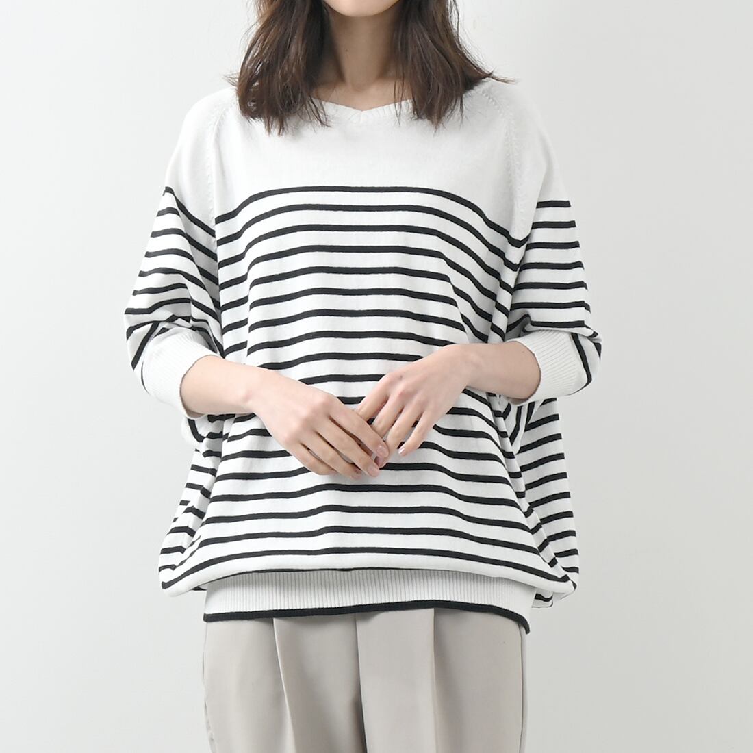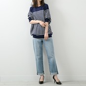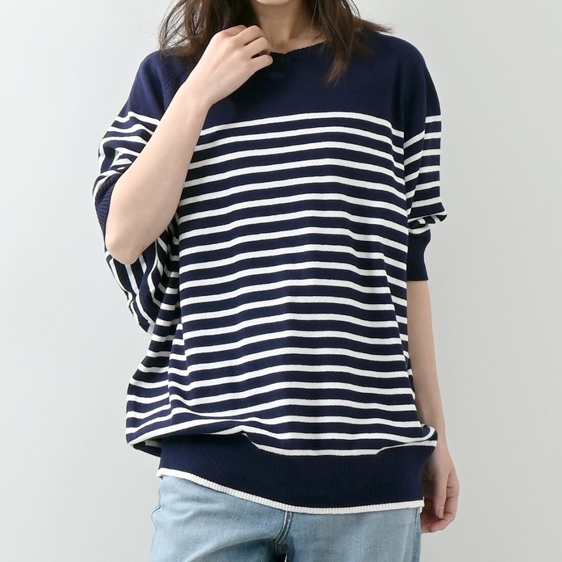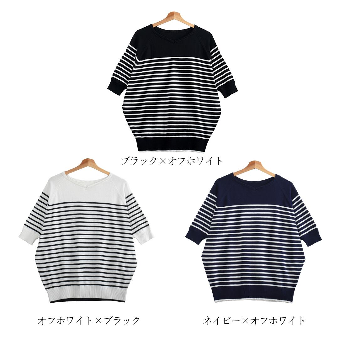 パネルボーダードルマン半袖コットンニット(op314)