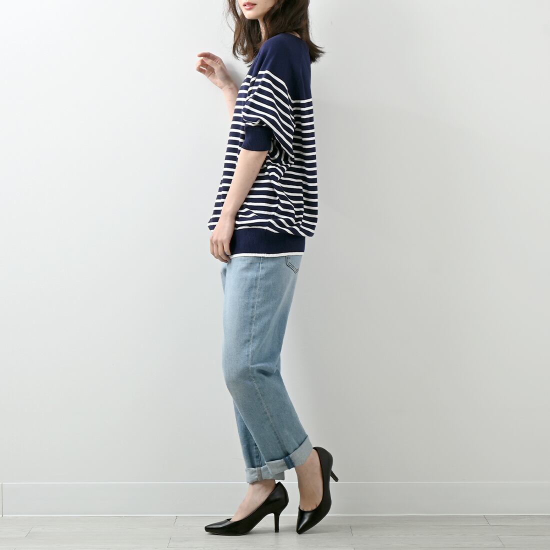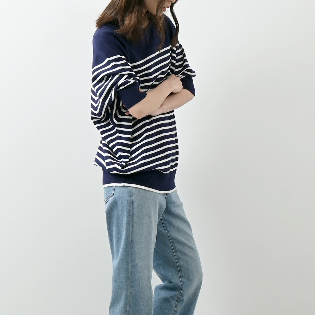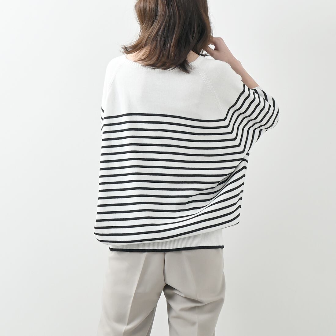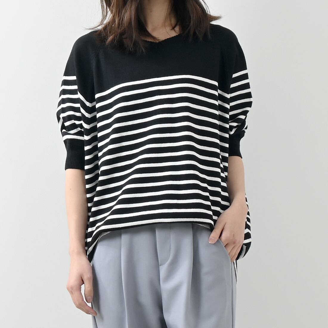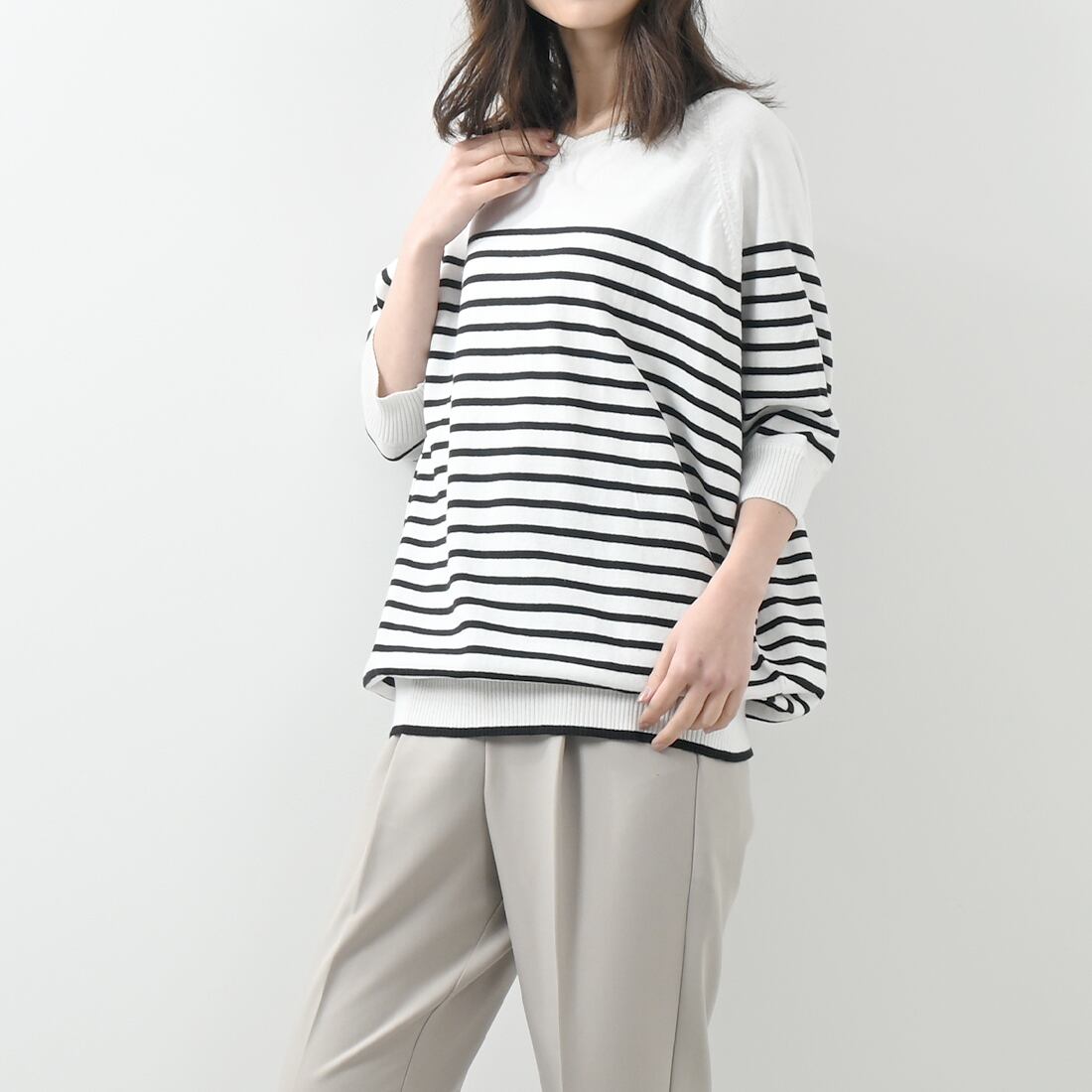 パネルボーダードルマン半袖コットンニット(op314)