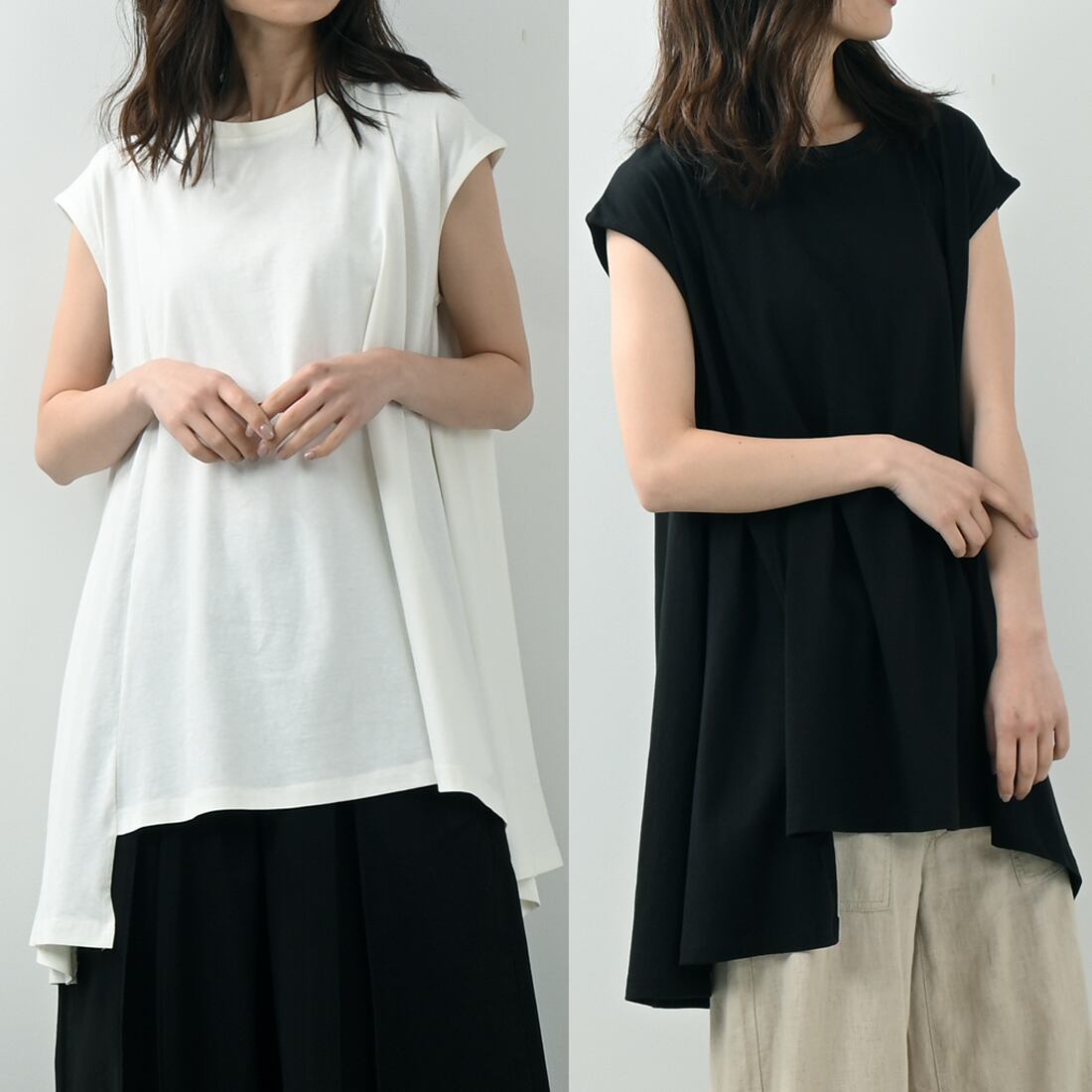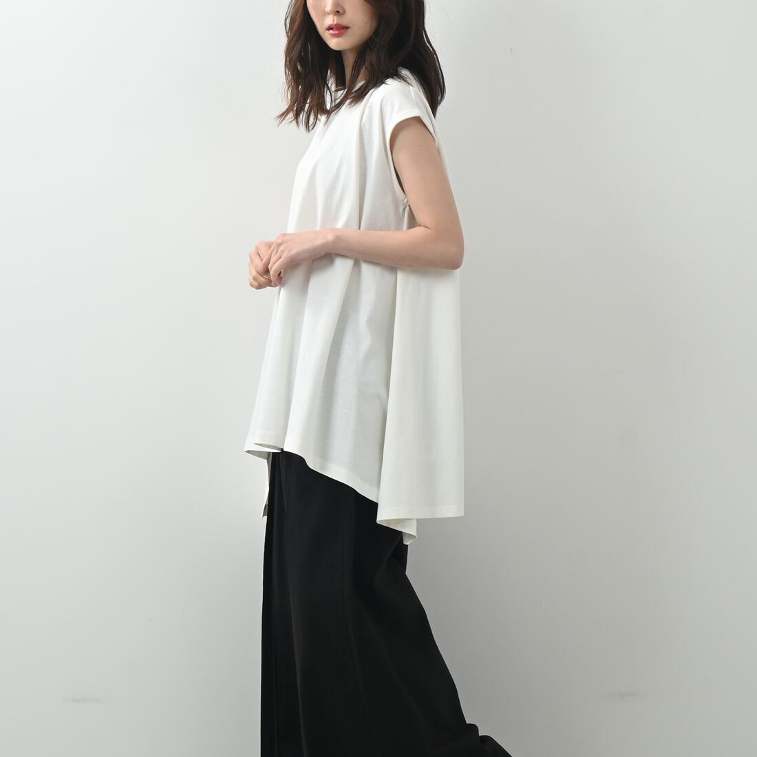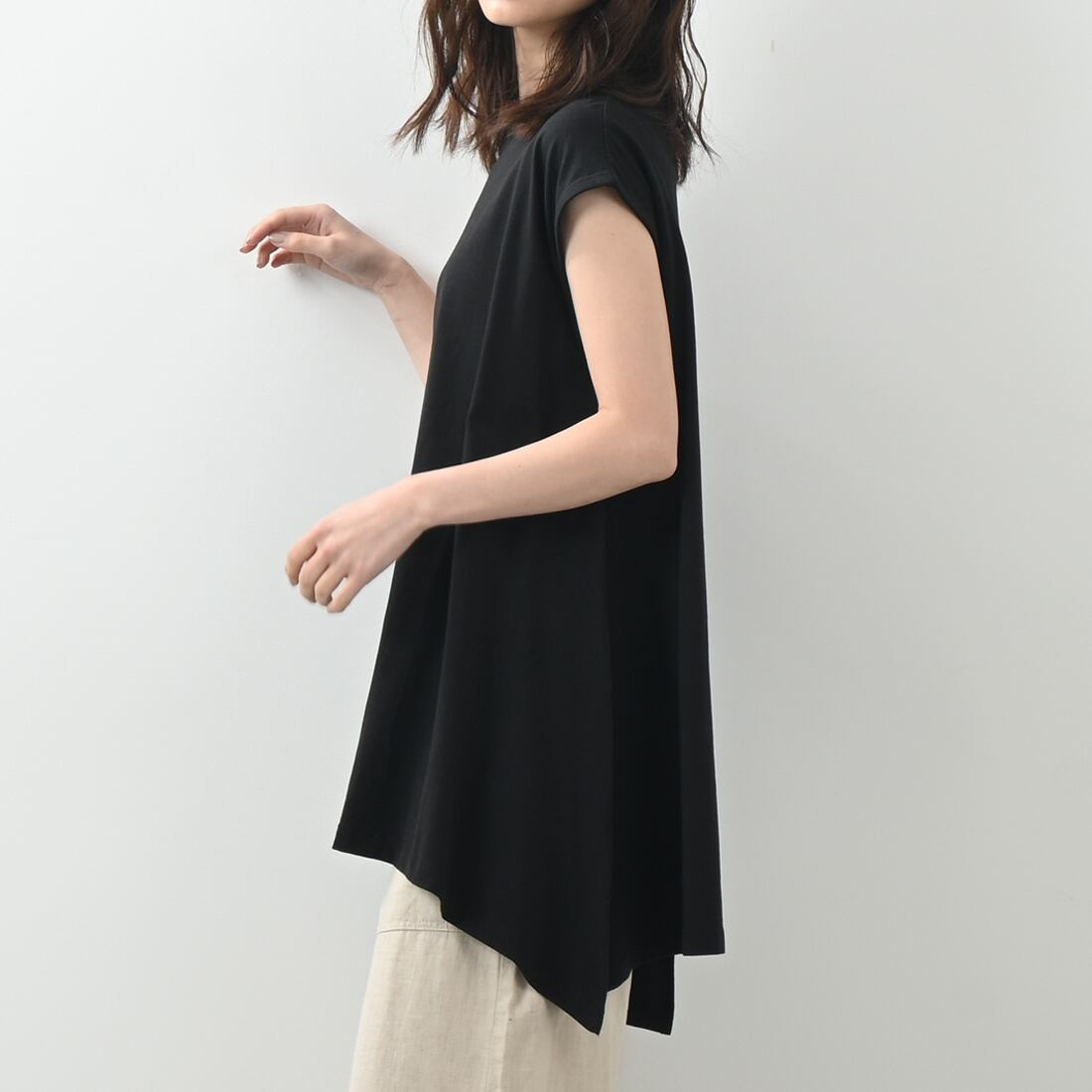 裾が段違いのアシメデザインになっているチュニック丈カットソーです。
