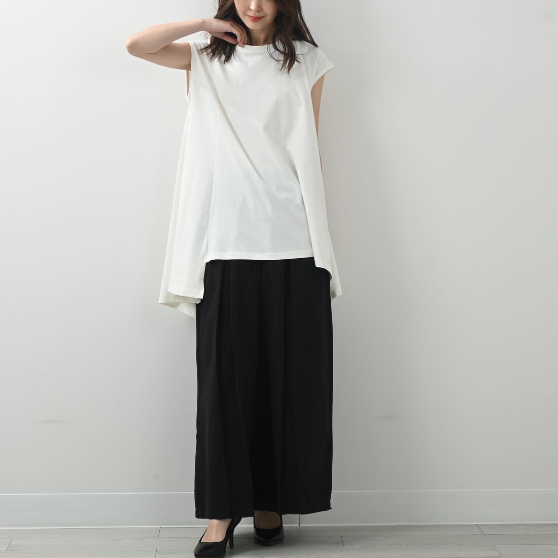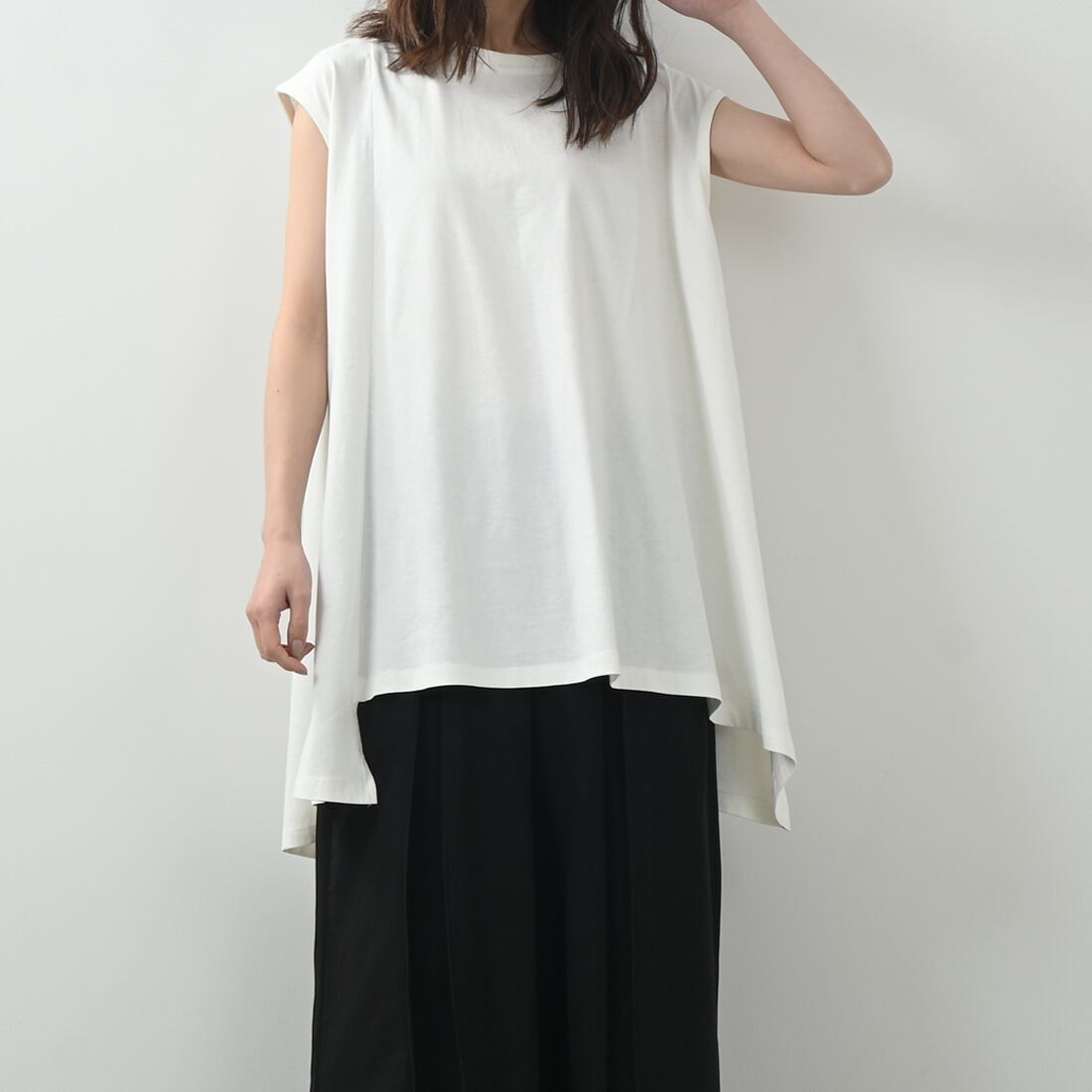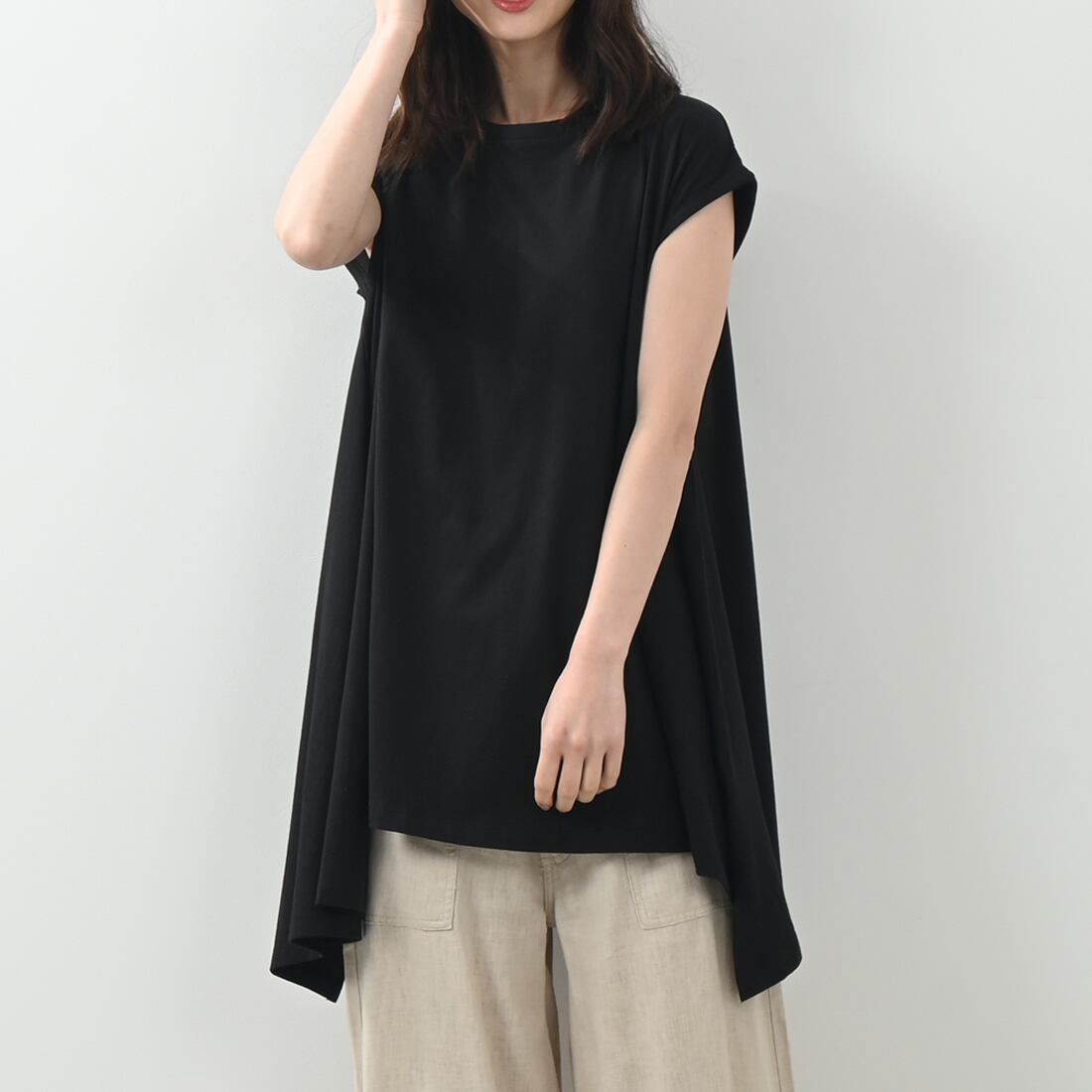 裾が段違いのアシメデザインになっているチュニック丈カットソーです。
