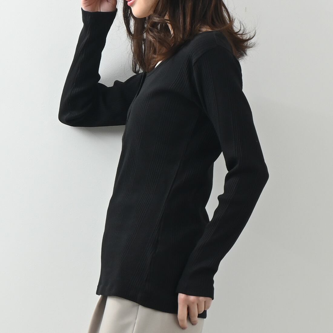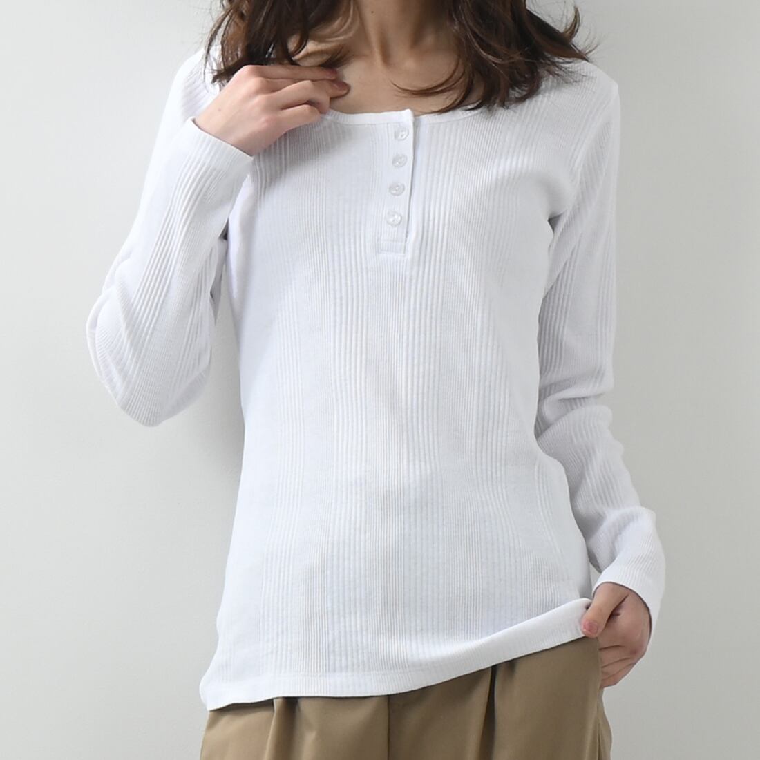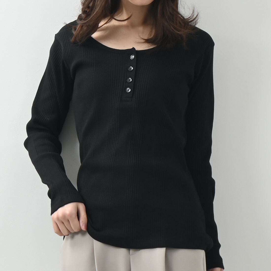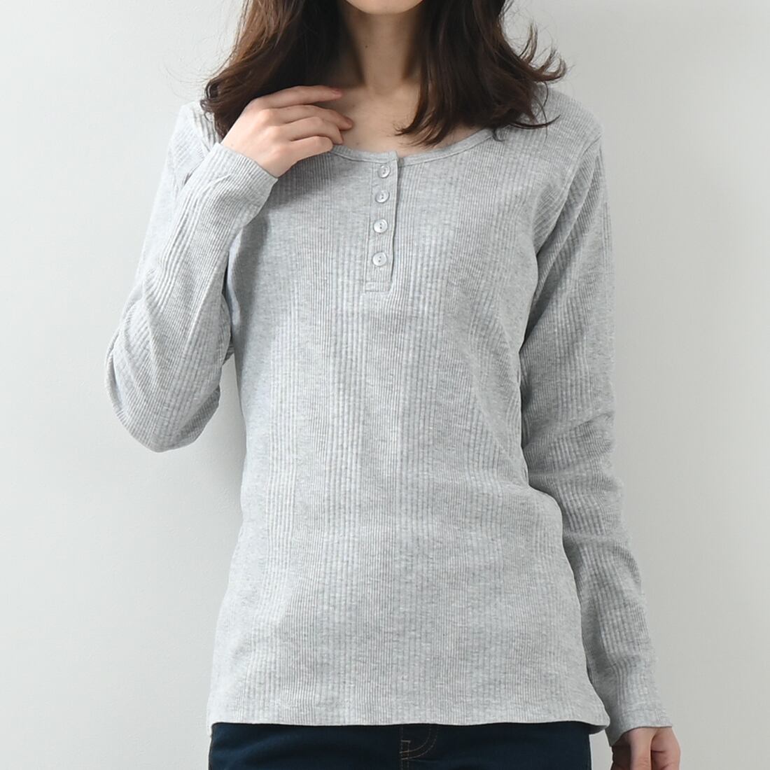 ランダムリブヘンリーネックロングTシャツ(op337)