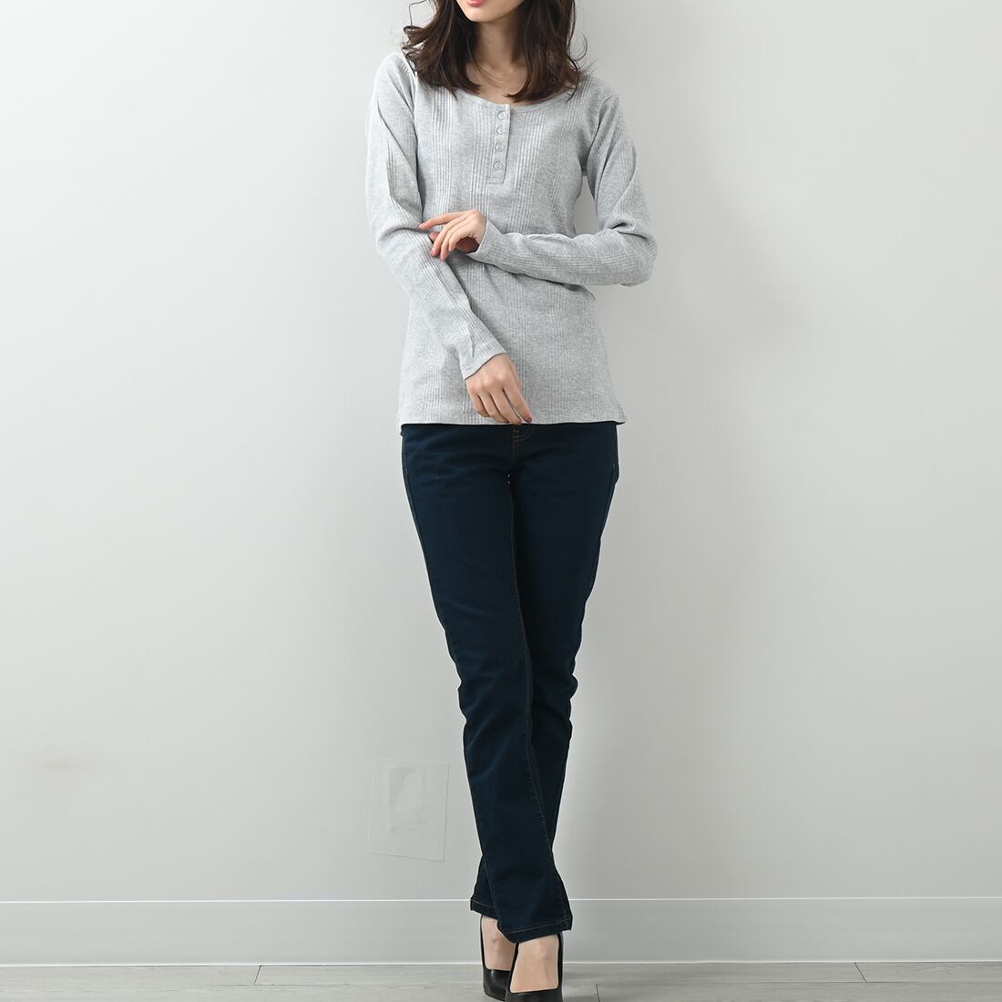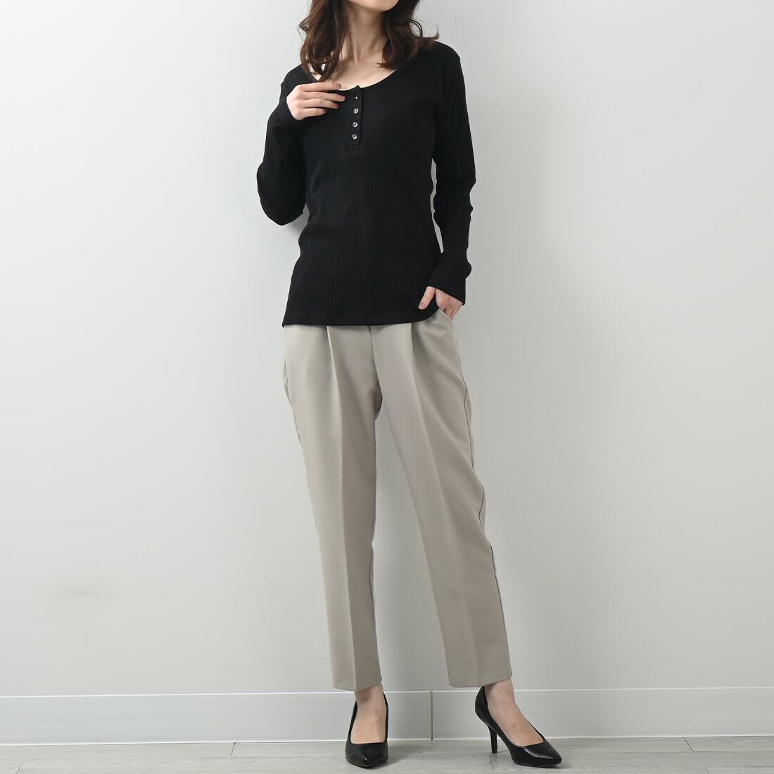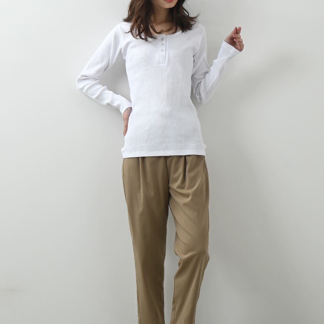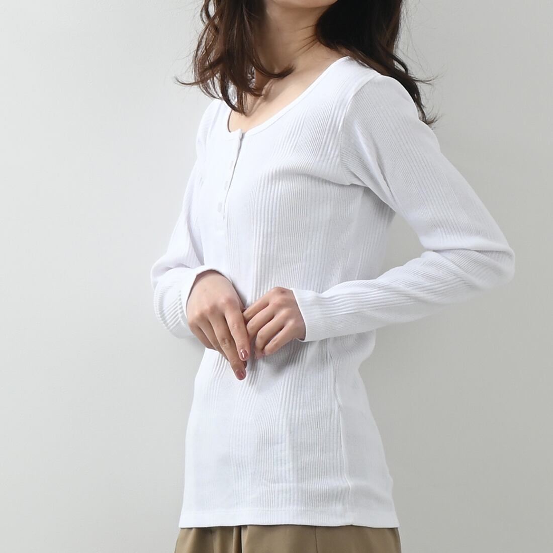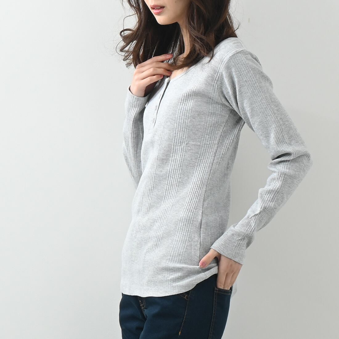 ランダムリブヘンリーネックロングTシャツ(op337)